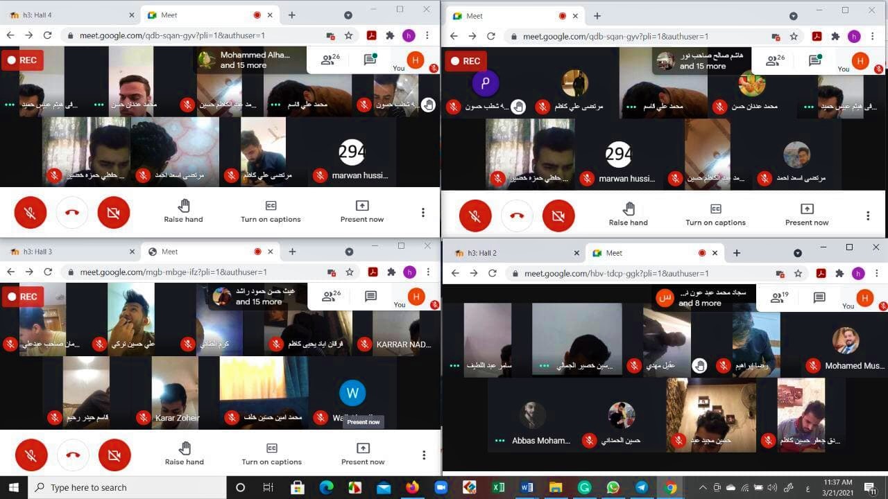 لغرض متابعة الامتحانات الالكترونية والوقوف على المشاكل والمعوقات التي تواجه الطلبة شكلت رئاسة جامعة وارث الانبياء عليه السلام لجان التعليم الالكتروني في كليات واقسام الجامعة حيث ان اعضاء لجان المراقبة الالكترونية وبإشراف مباشر من قبل السيد المساعد العلميّ الاستاذ الدكتور عباس الدعمي مستمرين يومياً بمتابعة الامتحانات الإلكترونية لطلبة الجامعة