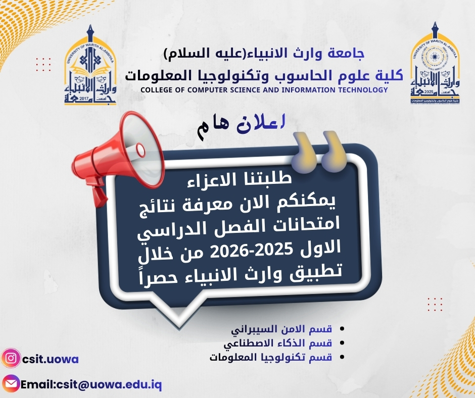 نعلن لكم صدور نتائج الامتحانات النهائية للفصل الدراسي الأول للعام الدراسي 2025–2026 لطلبة أقسام: