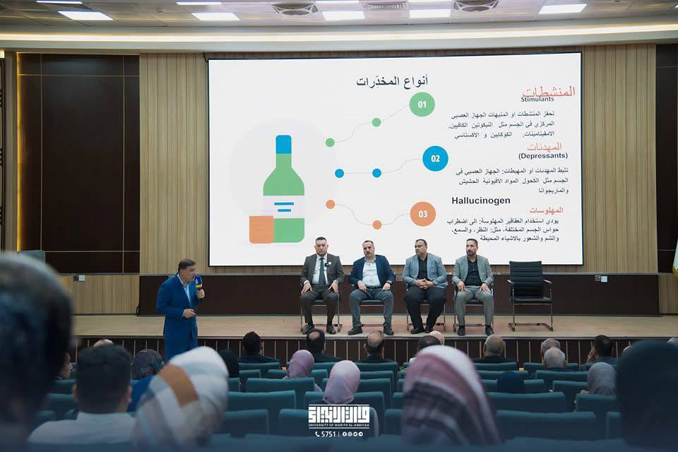نظمت جامعة وارث الأنبياء، ممثلة بكلية الطب، ندوة علمية بعنوان "آفة المخدرات: الأسباب والمعالجات"، قدمها كل من الدكتور جاسم الموسوي والدكتور صباح الجبوري.