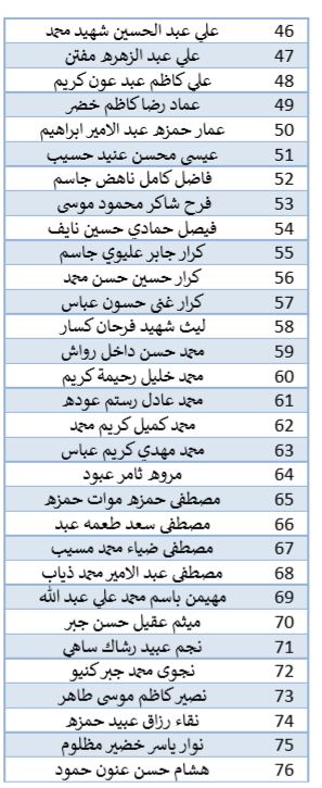 أسماء الطلبة المقبولين في كلية القانون للدراسة المسائي