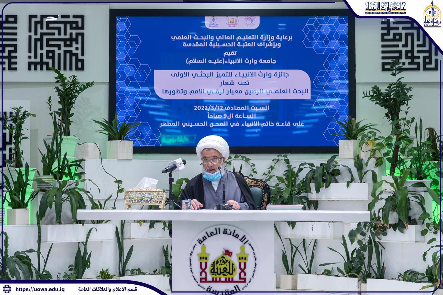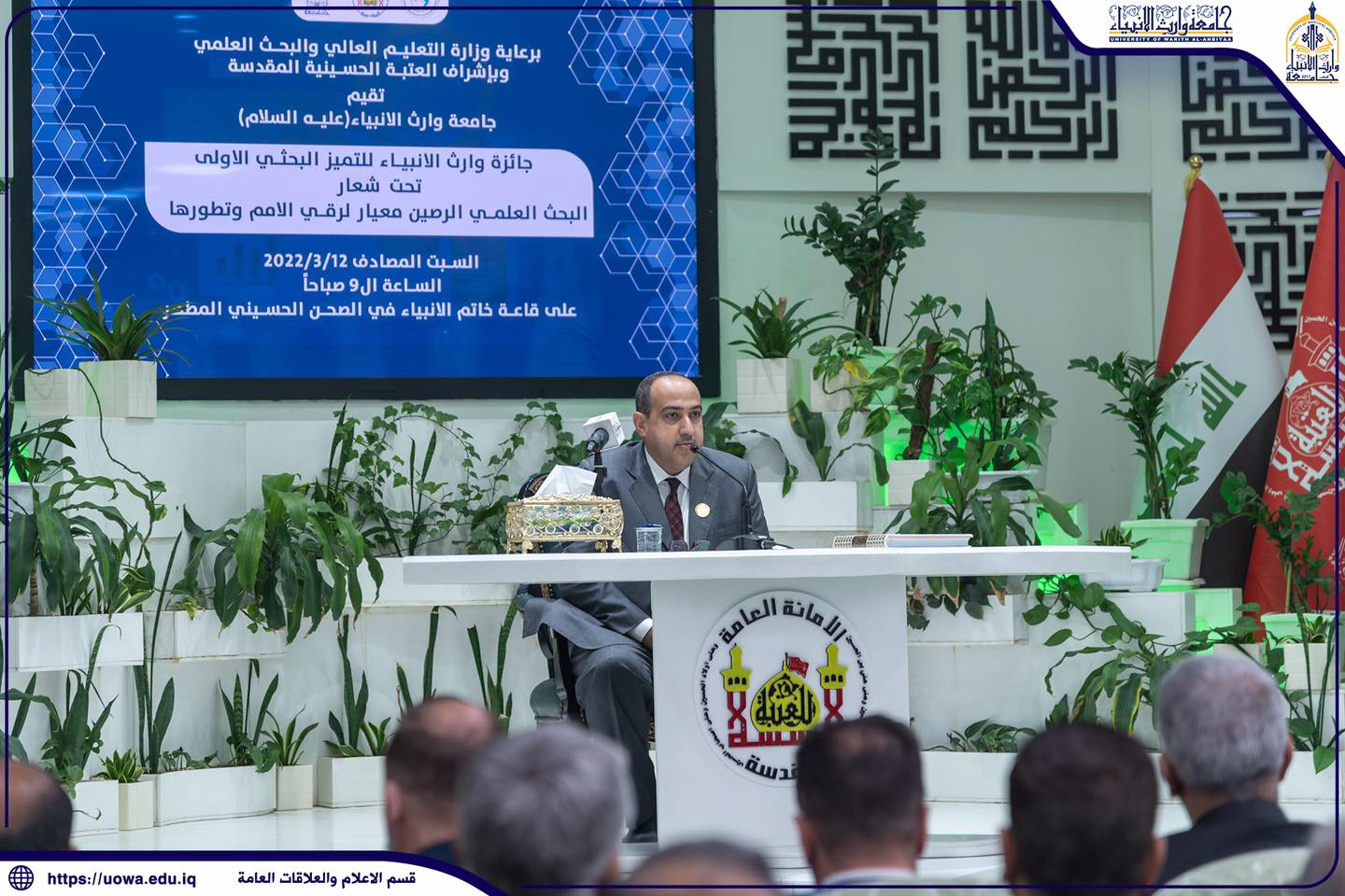 من الحرم الحسيني المطهر اختتام فعاليات جائزة وارث الأنبياء للتميز البحثي الاولى