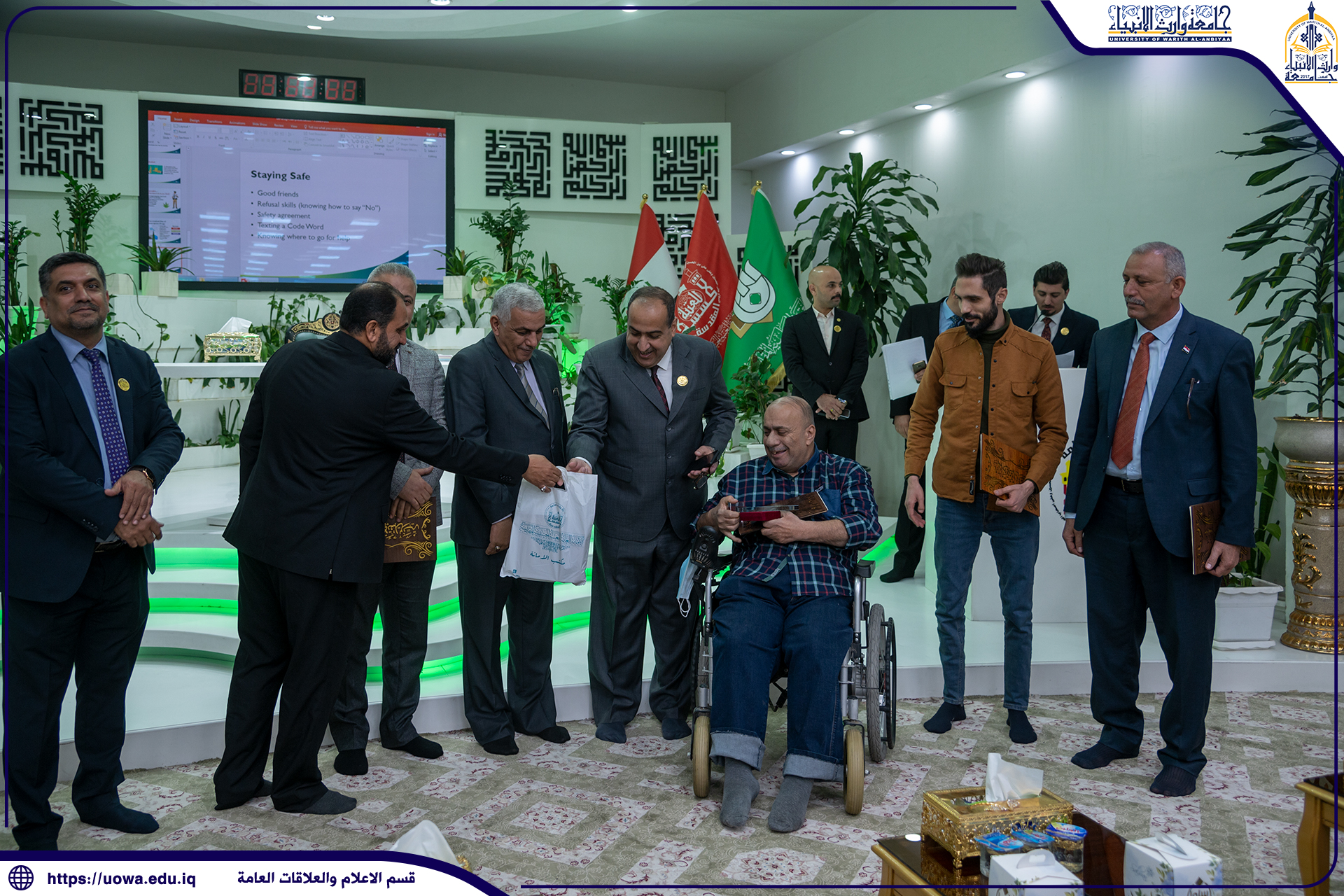 على هامش فعاليات مسابقة وارث الانبياء للتميز البحثي الاولى، كرم السيد رئيس الجامعة الاستاذ الدكتور ابراهيم الحياوي أعضاء الفريق الوزاري للتعليم الالكتروني تثميناً لجهودهم في متابعة وانجاح التعليم المدمج في الجامعات الحكومية والاهلية، حيث جرت مراسم التكريم على قاعة خاتم الانبياء داخل الصحن الحسيني المطهر.
