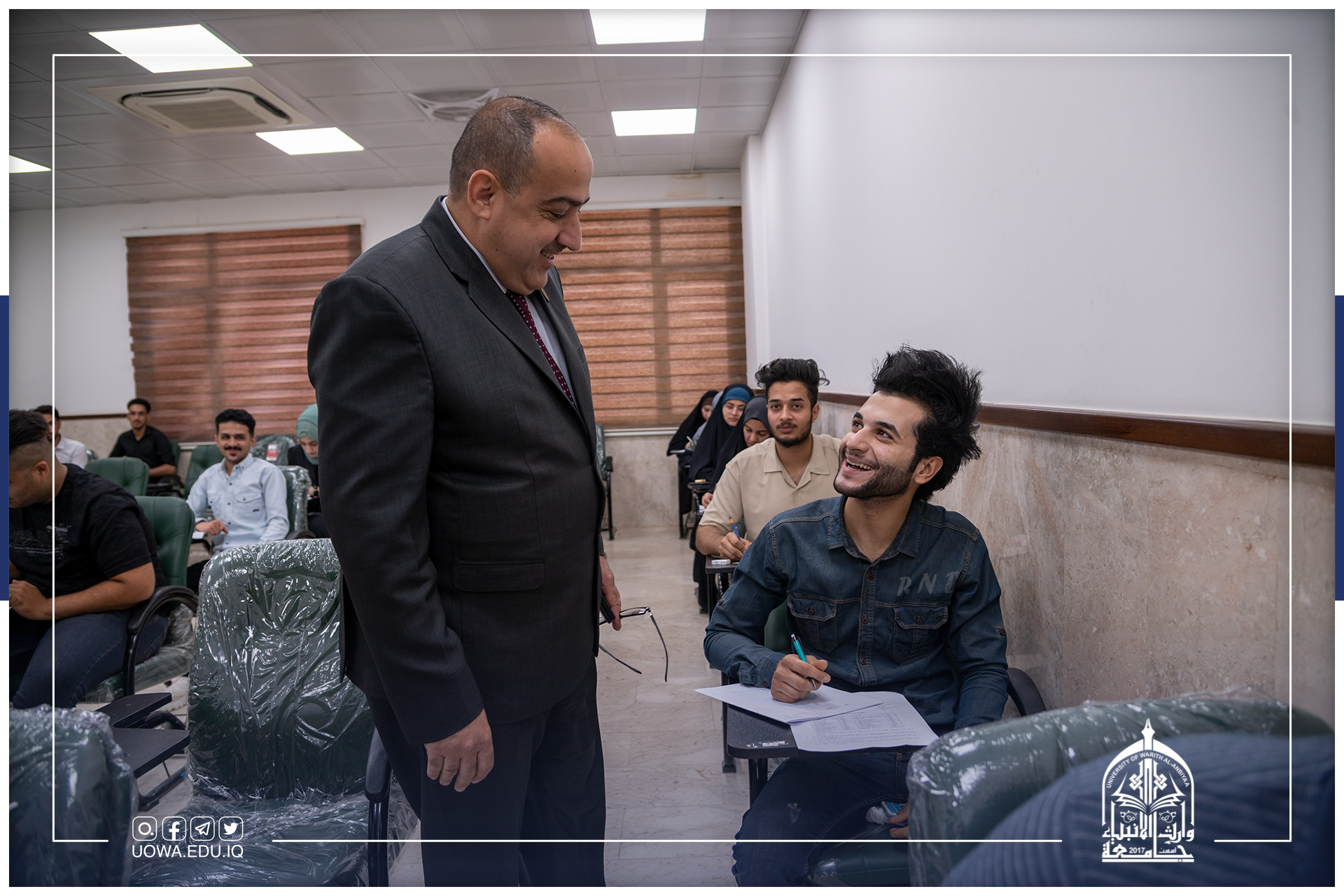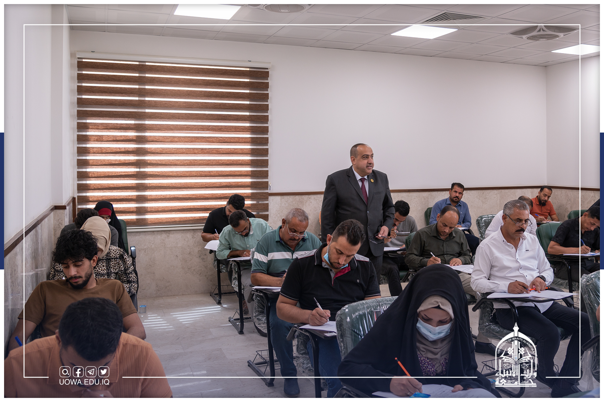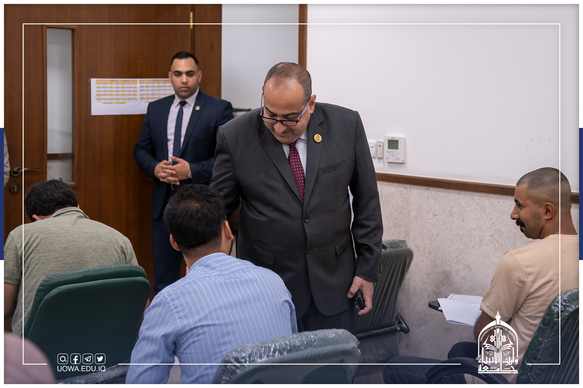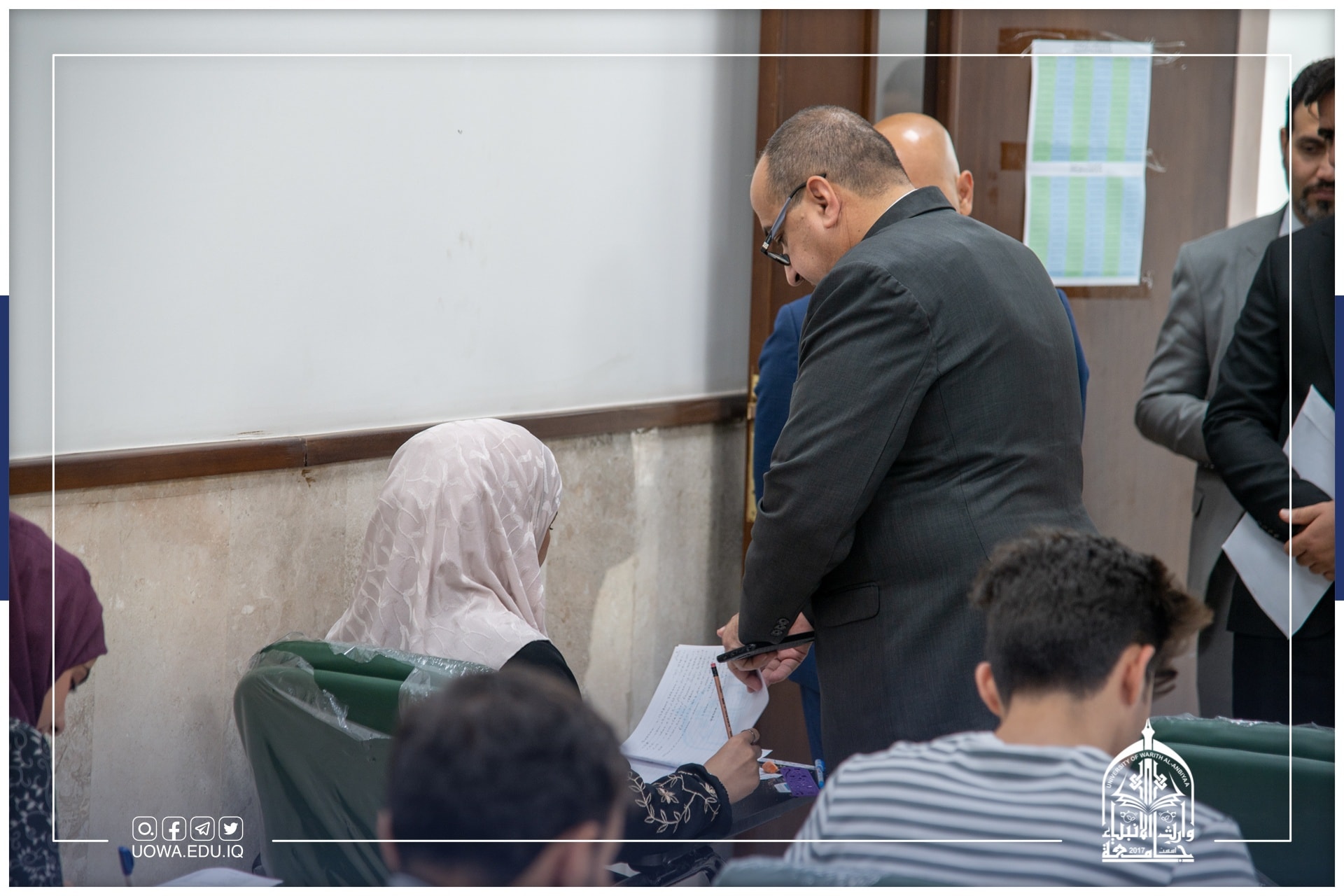 رئيس جامعة وارث الأنبياء (عليه السلام) الاستاذ الدكتور ابراهيم الحياوي، يتابع وبشكل يومي سير الامتحانات النهائية في الجامعة.