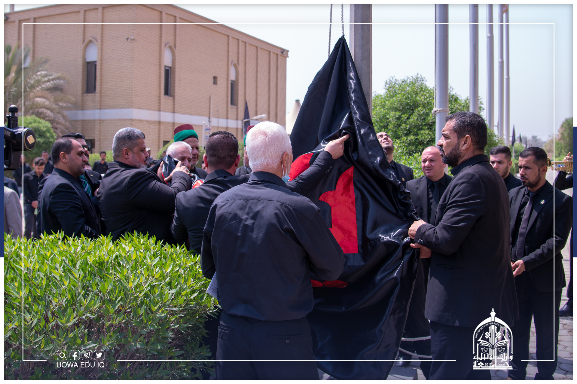 أقامت جامعة وارث الانبياء(عليه السلام) وبالتعاون مع شعبة رعاية الشباب التابع لقسم تطوير الموارد البشرية في العتبة الحسينية المقدسة مراسم رفع راية ياحسين السوداء في الجامعة إيذاناً ببدء موسم الأحزان المحمدية_ شهر محرم الحرام بمشاركة عدد من اساتذة وموظفي الجامعة والطلب.