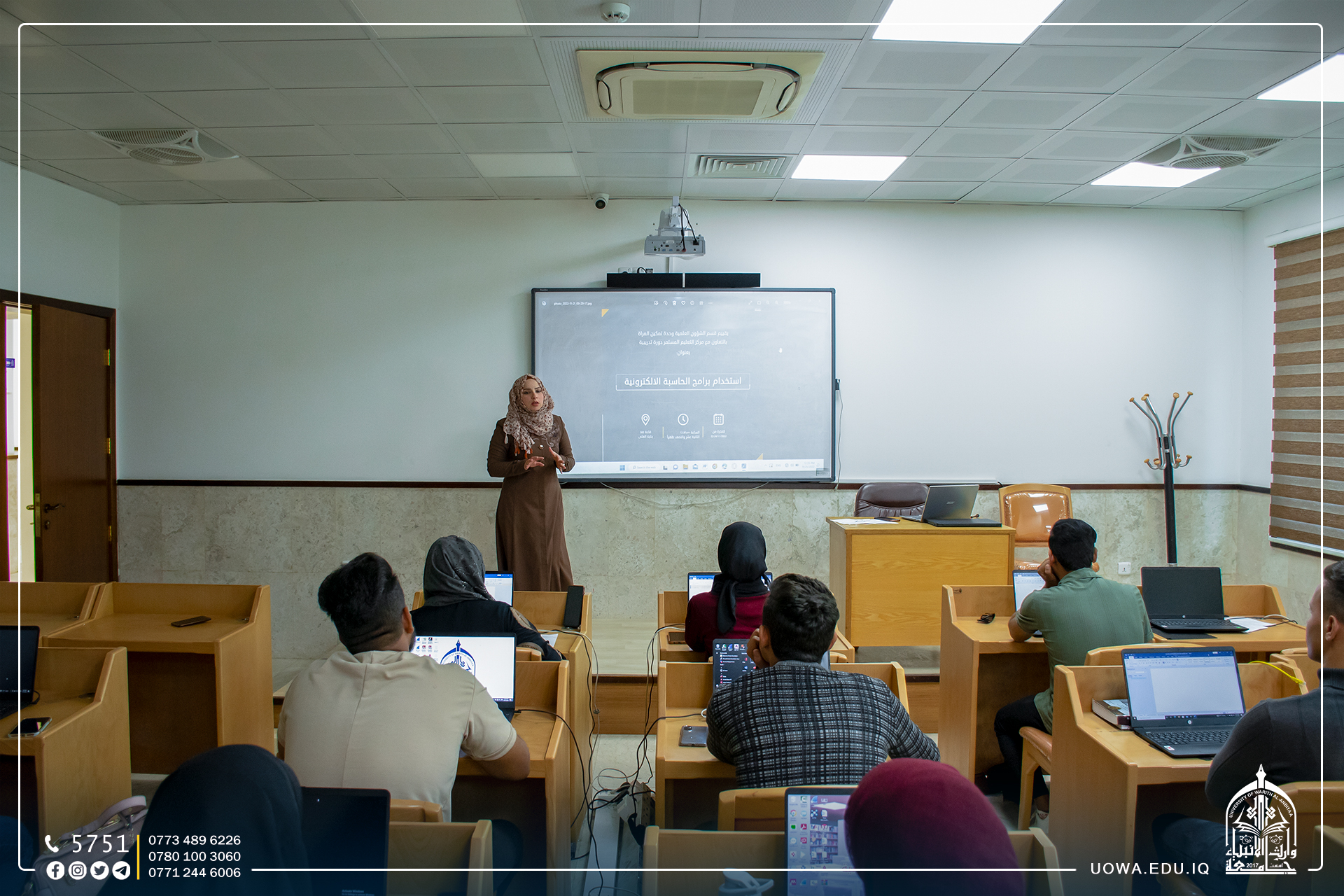 بالصور... اقامت وحدة تمكين المرأة في قسم الشؤون العلمية بجامعة وارث الانبياء (عليه السلام)، وبالتعاون مع مركز التعليم المستمر دورة تدريبية استمرت لثلاثة أيام لطلبة الجامعة بعنوان ( استخدام برامج الحاسبة الالكترونية) قدمتها م.م. ياسمين قاسم