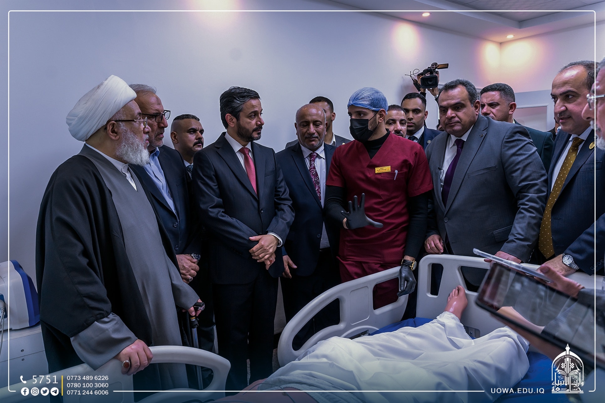 صرح وزير التعليم العالي والبحث العلمي الدكتور نعيم العبودي قائلاً: أن ما نراه في جامعات العتبة الحسينية المقدسة هو رسالة واضحة للمؤسسات التعليمية الأهلية الاخرى بأن تحث الخطى لتكون كما جامعة وارث الانبياء(عليه السلام) وجامعة الزهراء(عليها السلام) للبنات، من حيث توفير كل السبل التطويرية التي يحتاجها الطالب بهدف الارتقاء بمستوى التعليم في العراق موضحا أن التعليم بين الحكومي والأهلي سيكون ضمن مسار موحد ومحاور واحدة مشيدا بالدور الممتاز الذي تمارسه الأمانة العامة للعتبة الحسينية من خلال عمليات إنشاء الصروح العلمية والطبية المتميزة لكافة شرائح المجتمع العراقي.