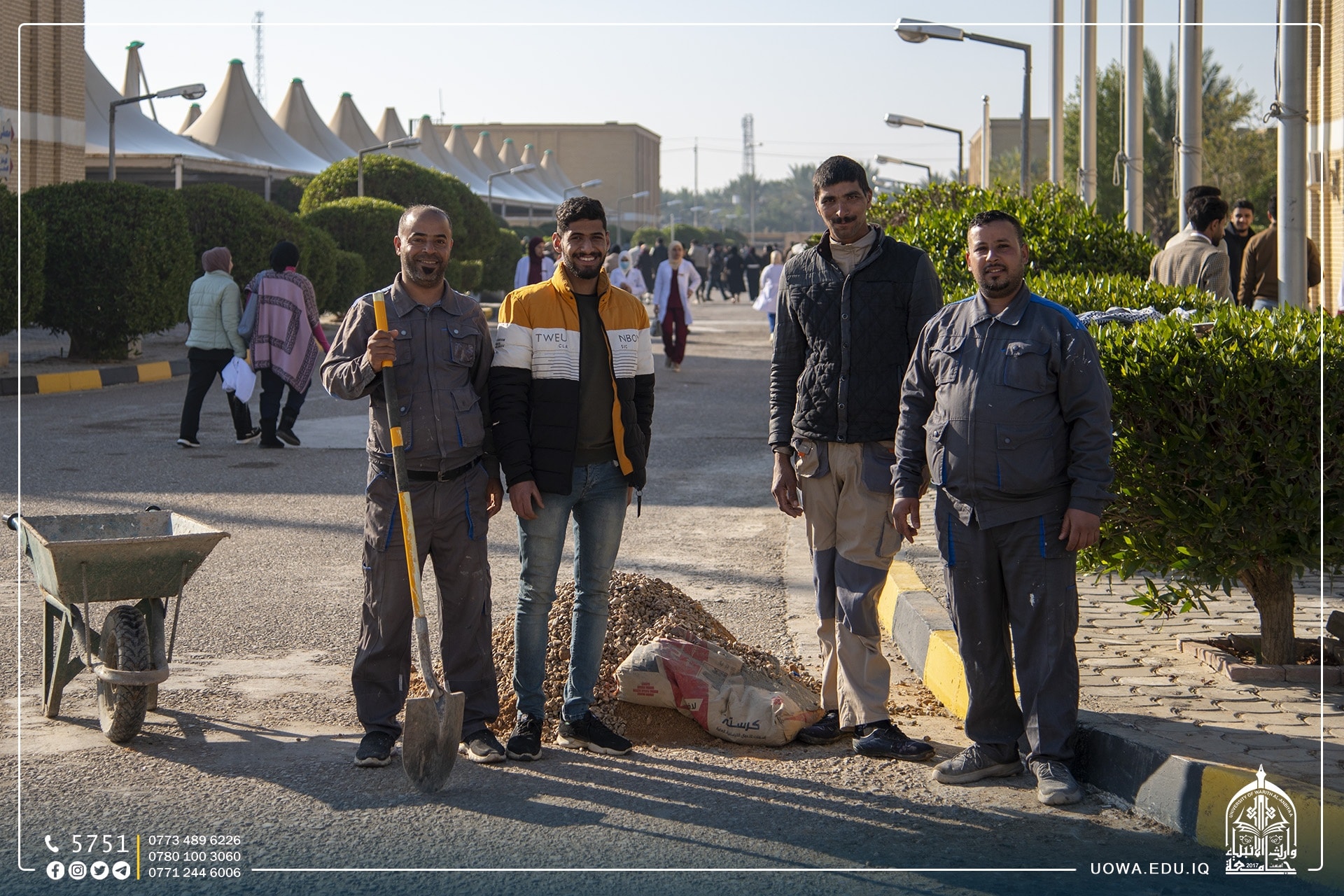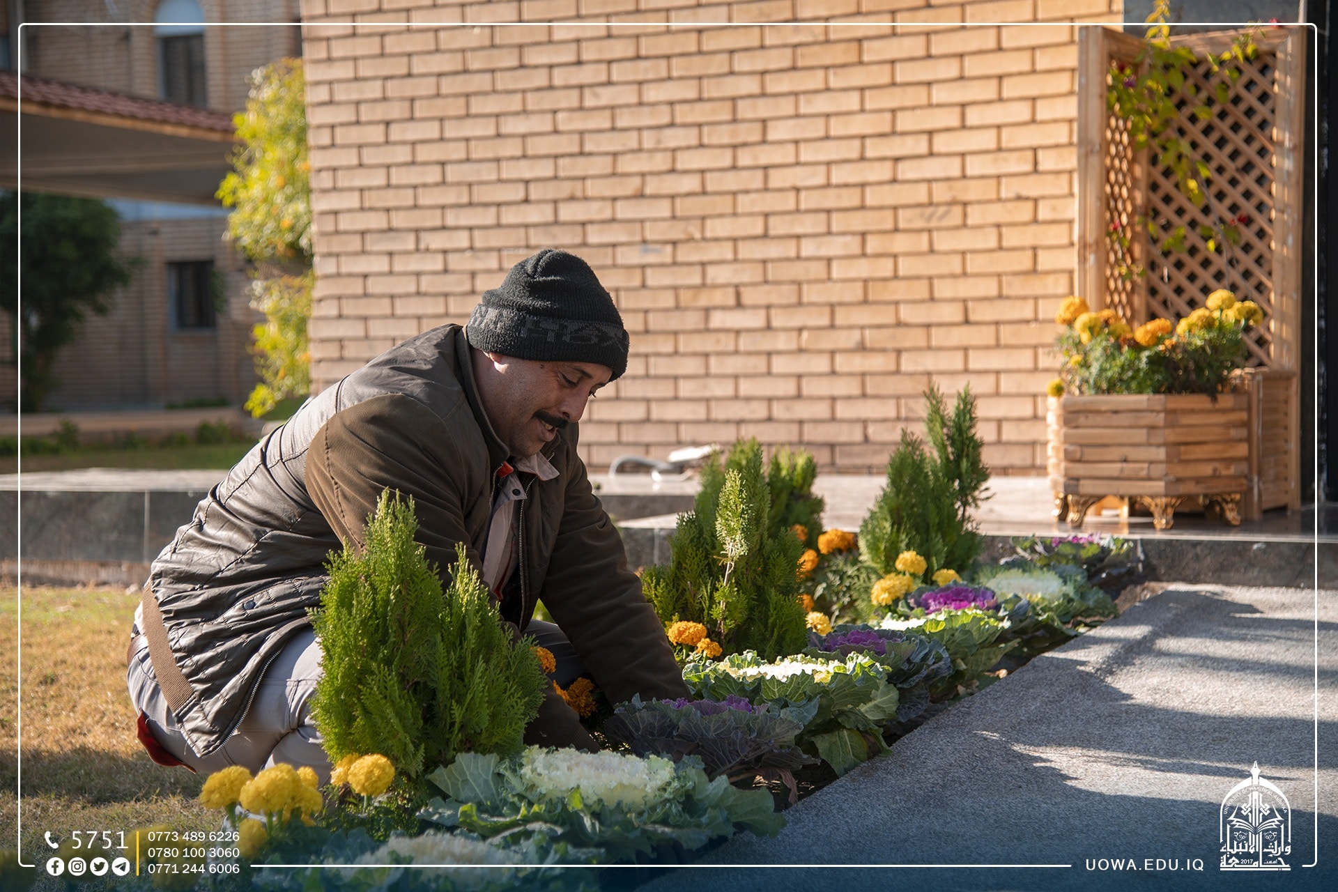 بالصور...جهود استثنائية لملاكات قسم شؤون الديوان في جامعة وارث الانبياء(عليه السلام) من خلال الاهتمام بالمساحات الخضراء ونظافة الجامعة لإظهارها بأبهى صورة.