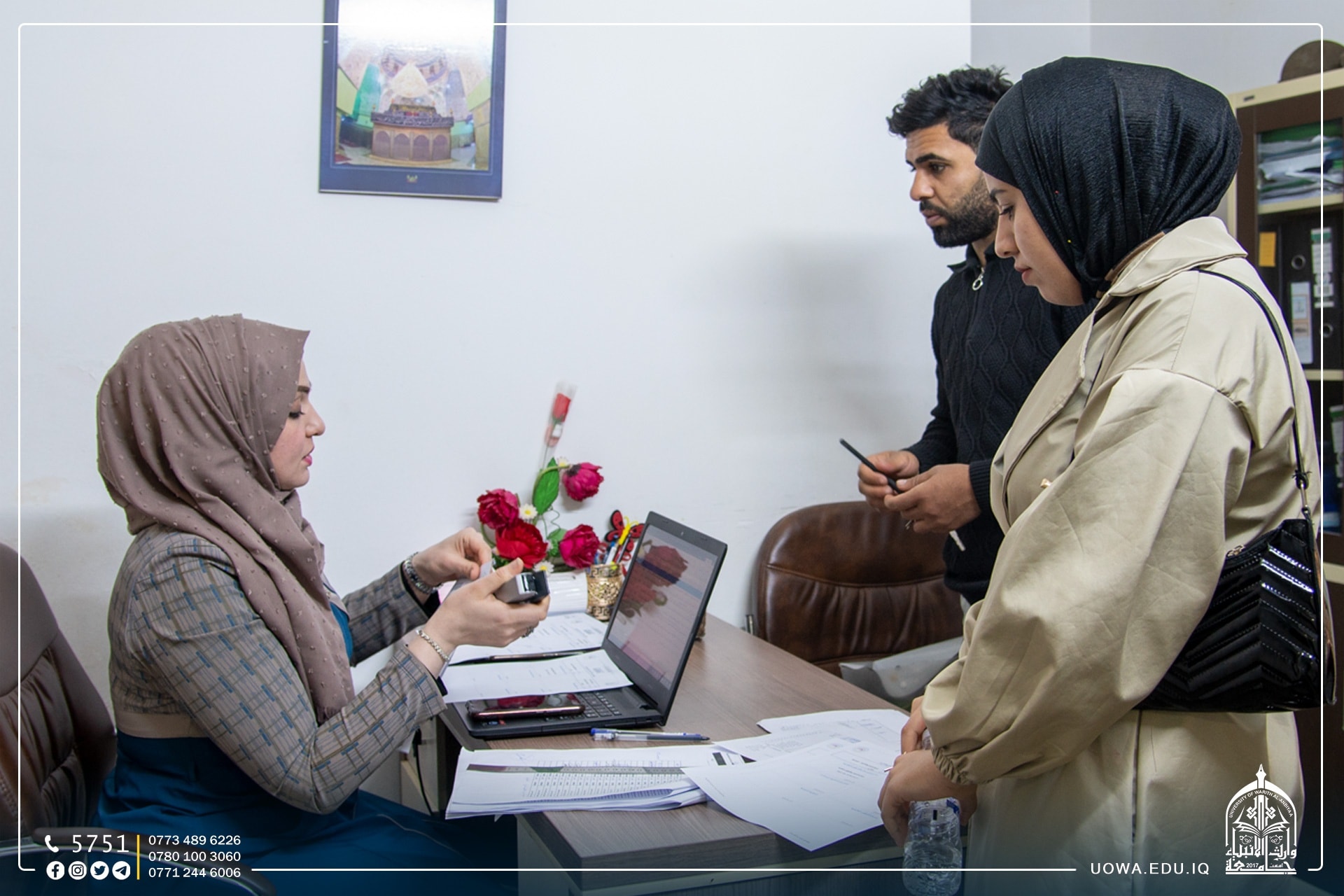 جانب من توزيع نتائج امتحانات الفصل الاول لطلبة كلية الإدارة والاقتصاد في جامعة وارث الانبياء(عليه السلام).