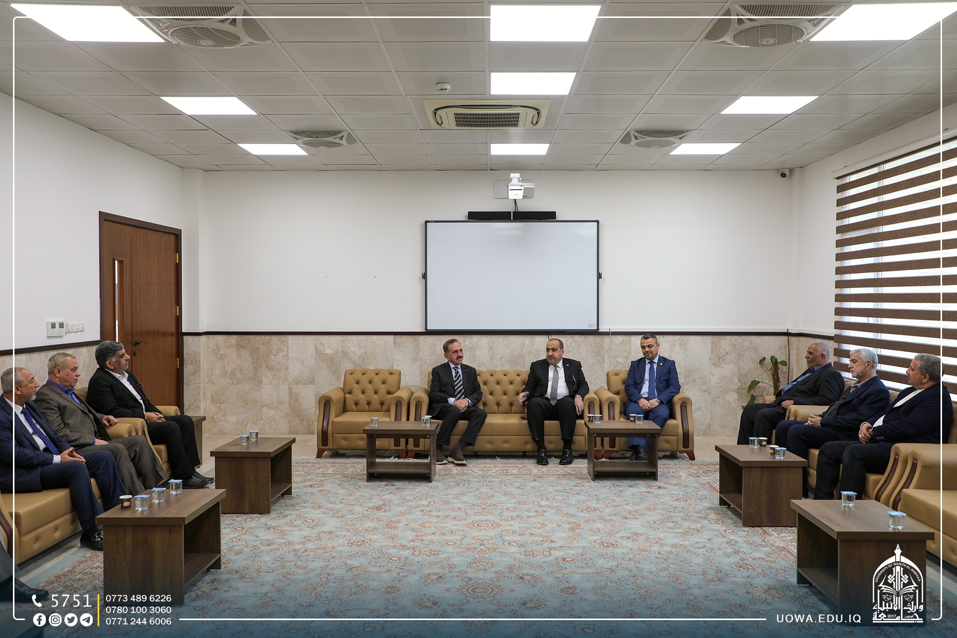 بالصور.. لقاء السيد رئيس الجامعة الاستاذ الدكتور ابراهيم الحياوي بوفد من مجلس اعيان كربلاء، سعياً من رئاسة الجامعة على ديمومة الانفتاح على المجتمع الكربلائي والمؤسسات الاجتماعية ومنظمات المجتمع المدني والسعي الجدي والحثيث للارتقاء بهذه المدينة المقدسة علمياَ وثقافياَ وعمرانياَ