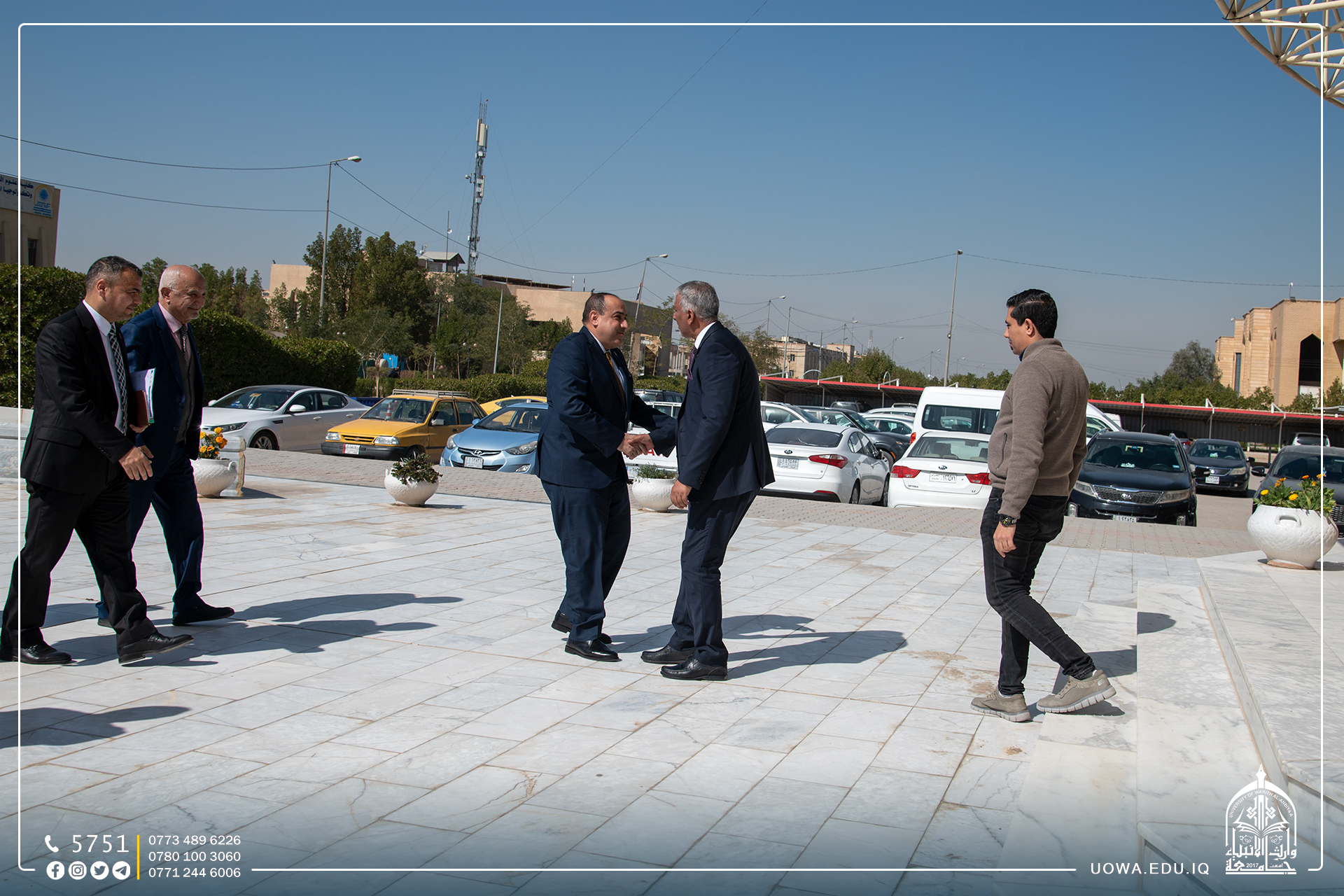 من أجل تعزيز التعاون العلمي في بنشر البحوث الرصينة بين جامعتي كربلاء ووارث الانبياء (عليه السلام)، زار السيد رئيس جامعة وارث الانبياء الاستاذ الدكتور ابراهيم سعيد الحياوي يرافقة المساعد الاداري الاستاذ الدكتور نوفل الاعرجي والوفد المرافق لهما جامعة كربلاء.