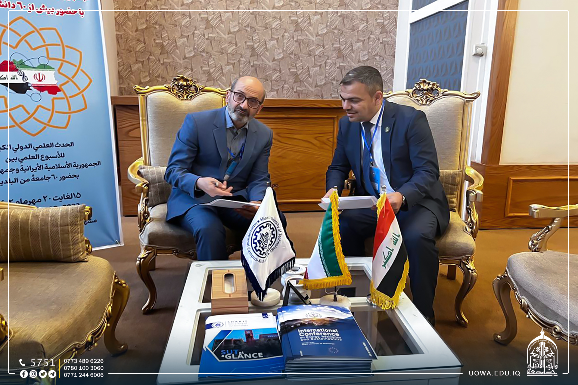 عدد من الإتفاقيات العلمية مع الجامعات الايرانية ( جامعة العلامة الطبطبائي، وجامعة صنعتي شريف التكنلوجية، وجامعة الرازي ،وجامعة علم وصنعت)