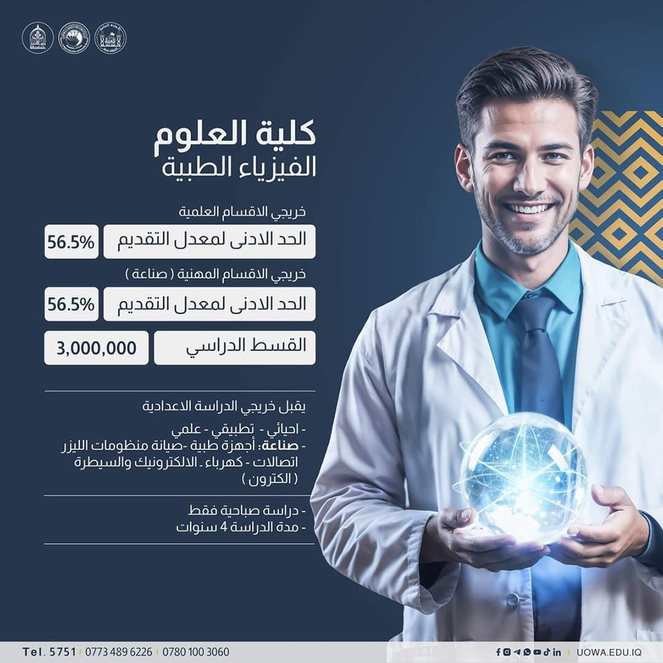 اكتشف تخصصات جامعة وارث الانبياء (عليه السلام) في المجالات الطبية، الهندسية، والعلوم الإنسانية.