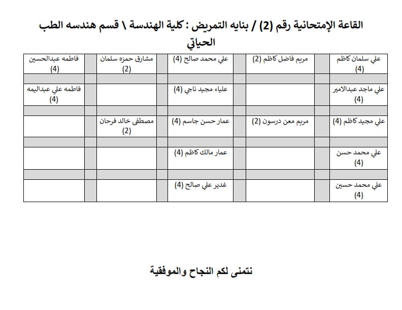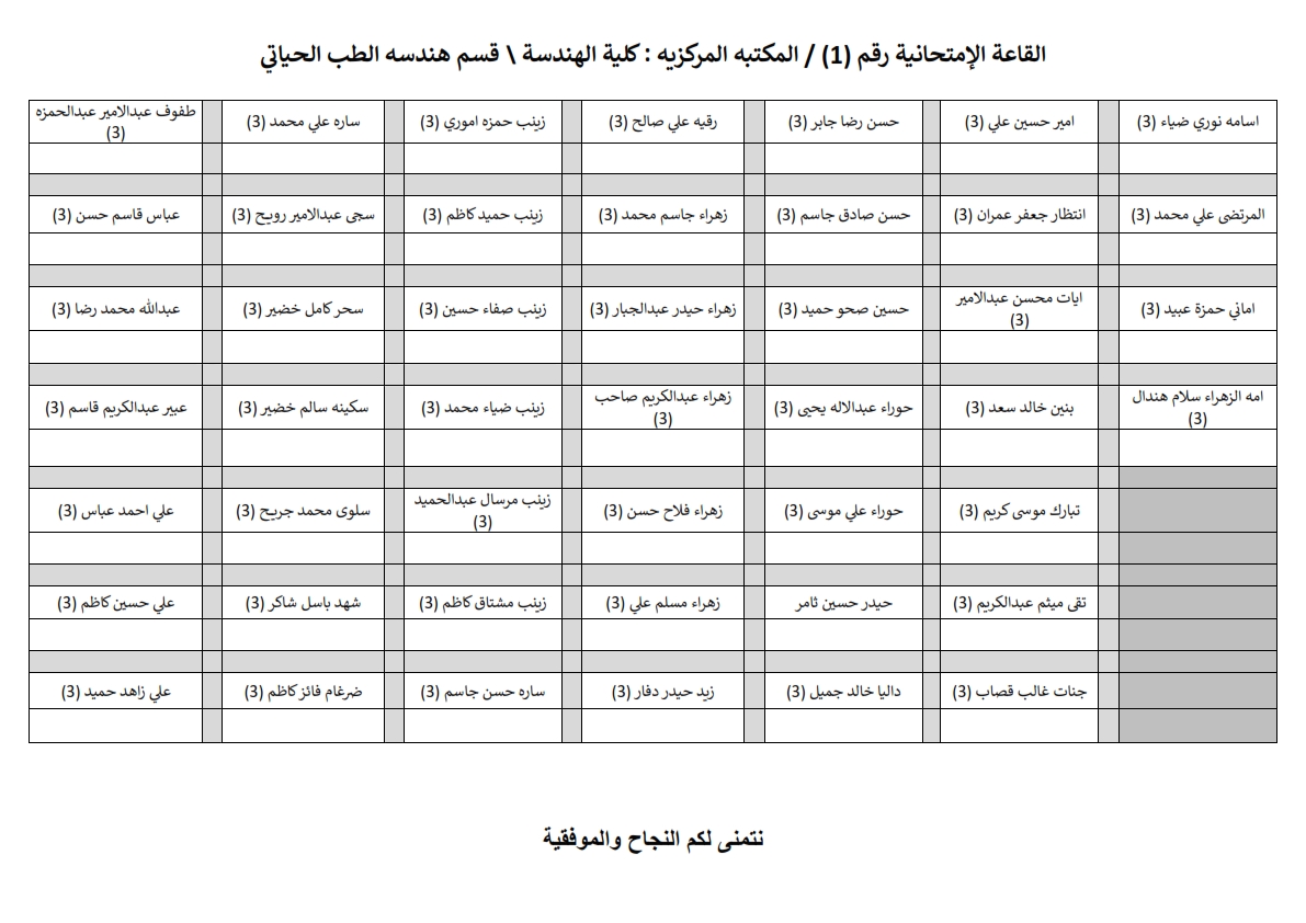 خارطة جلوس طلبة قسم هندسة الطب الحياتي