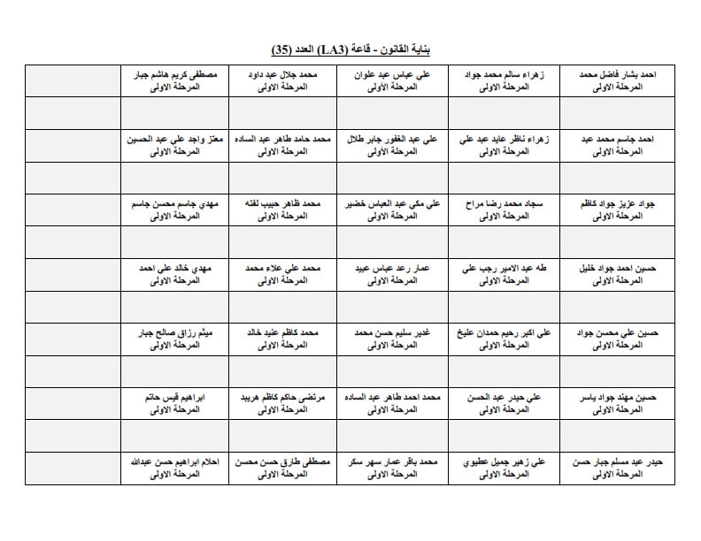 خارطة جلوس طلبة قسم الهندسة المدنية - المرحلة الاولى