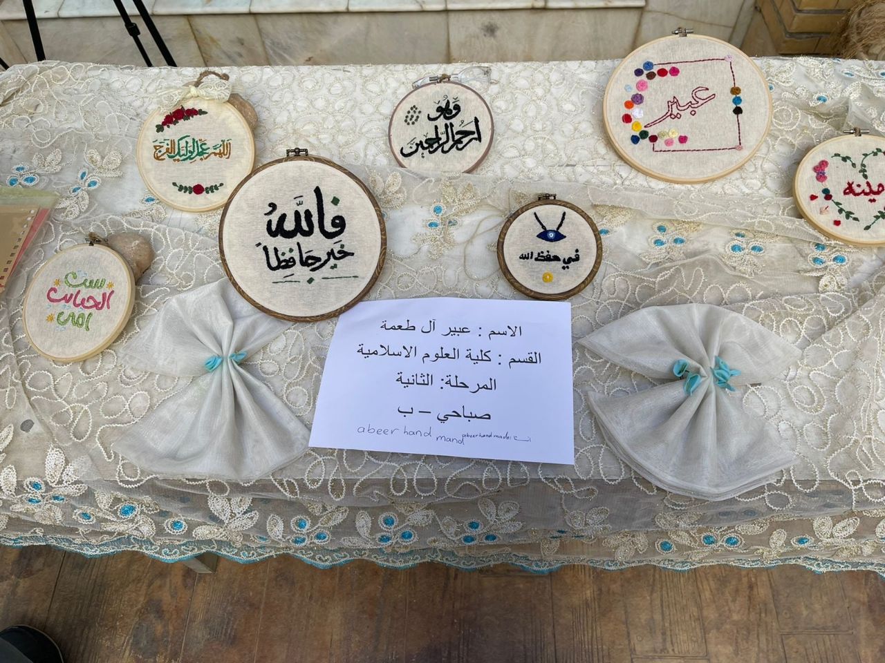 مشاركة طالبات في قسم علوم القرآن المرحلة الثانية الدراسة الصباحية في معرض الفنون والاعمال اليدوية الذي اقامته جامعة وارث الانبياء يوم الاثنين الموافق ٢٨/ ٣وحازت الاعمال على اعجاب الحاضرين واشادوا بالدعم المقدم للطلبة في تحفيزهم على هكذا نشاطات