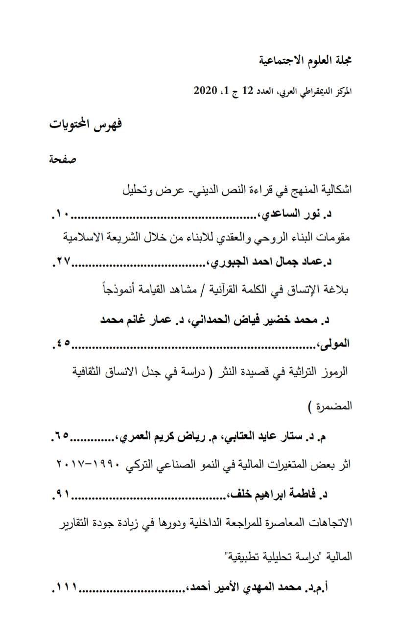 نشر البحث الموسوم ب ( اشكالية المنهج في قراءة النص الديني - عرض وتحليل) للدكتورة نور الساعدي في مجلة العلوم الاجتماعية المانيا برلين
