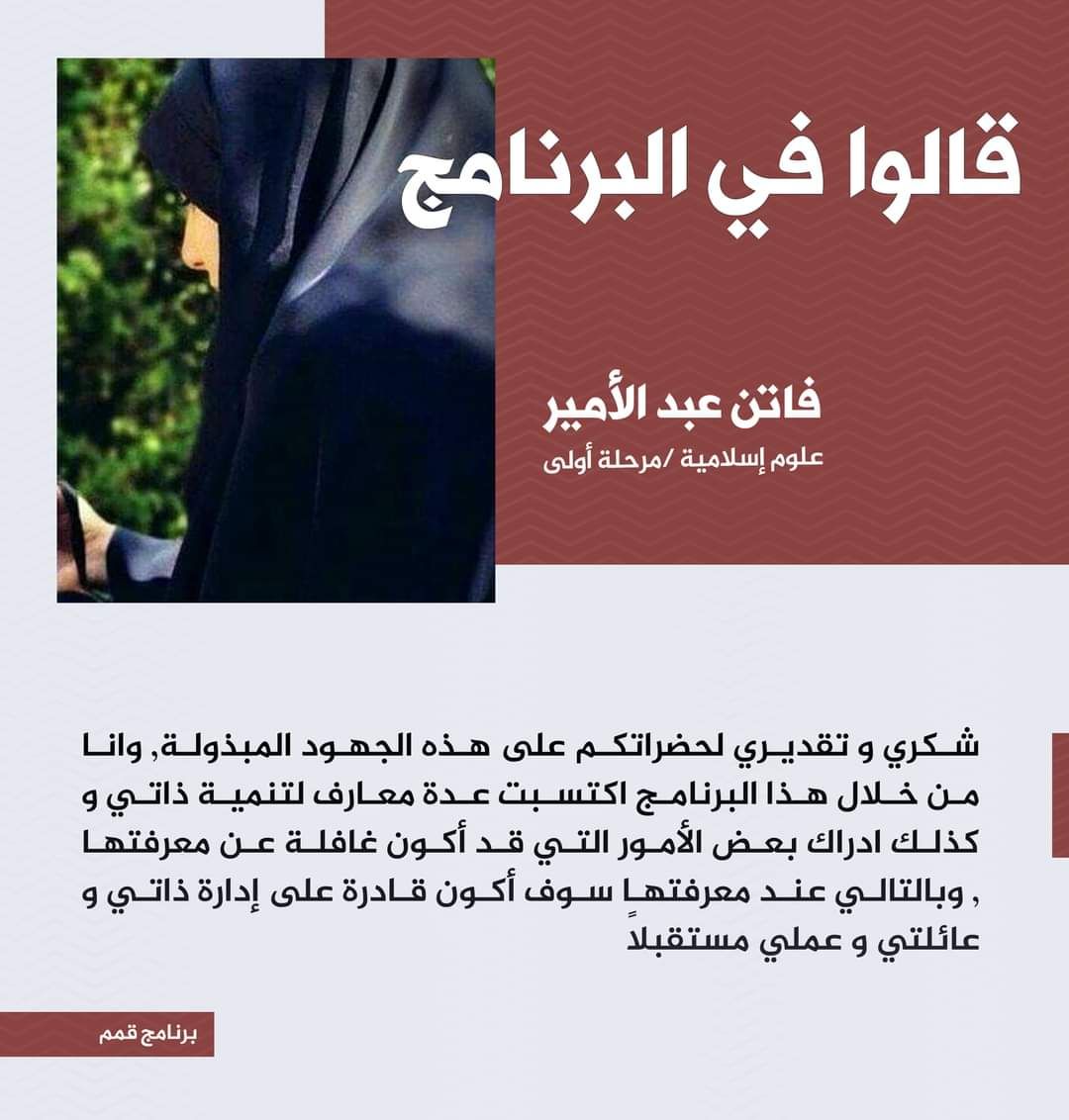 "طالب في كلية العلوم الإسلامية بجامعة وارث الأنبياء يحصد المركز الثاني في مسابقة المشروع القرآني في الجامعات"