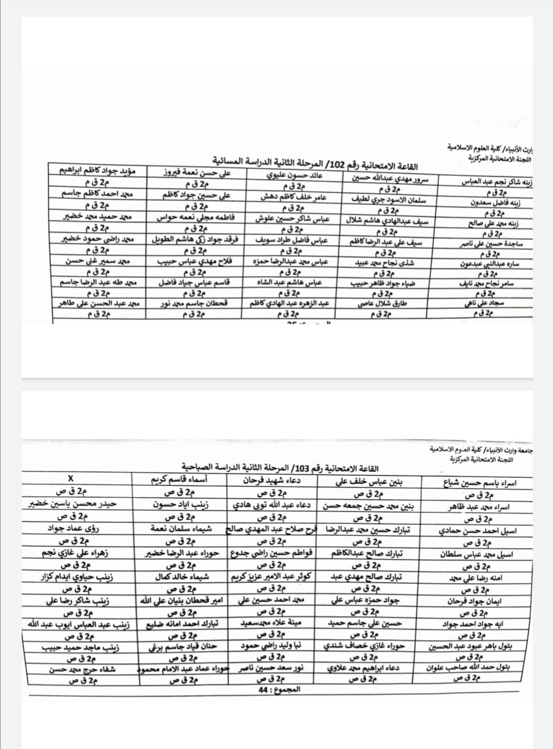 خارطة جلوس طلبة المرحلة الثانية الدراستين الصباحية والمسائية للامتحانات الحضورية لنهائي الفصل الاول