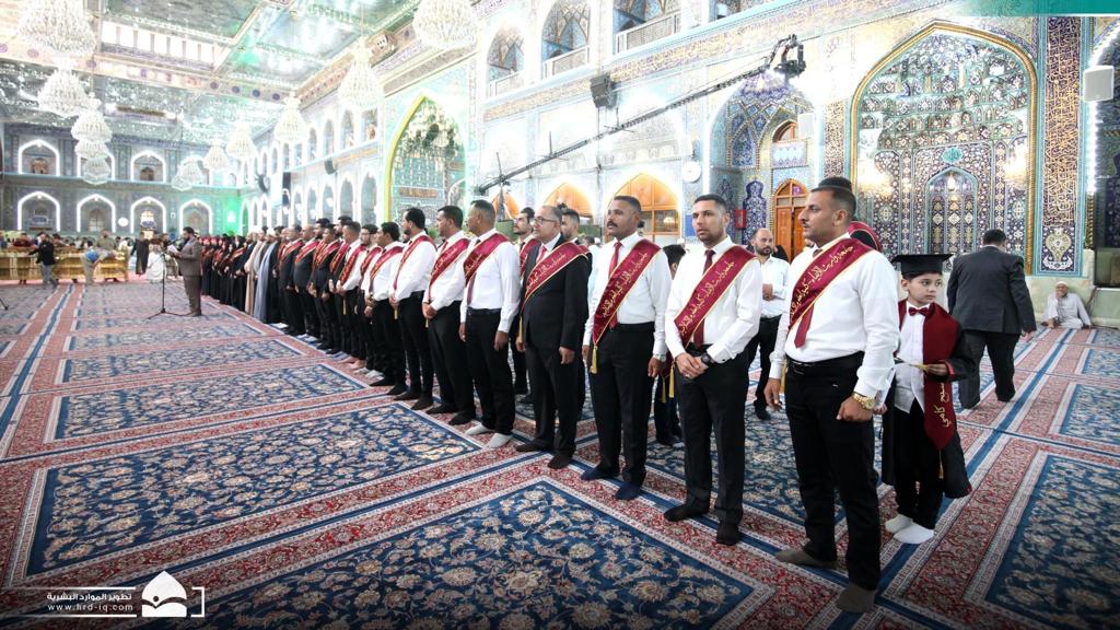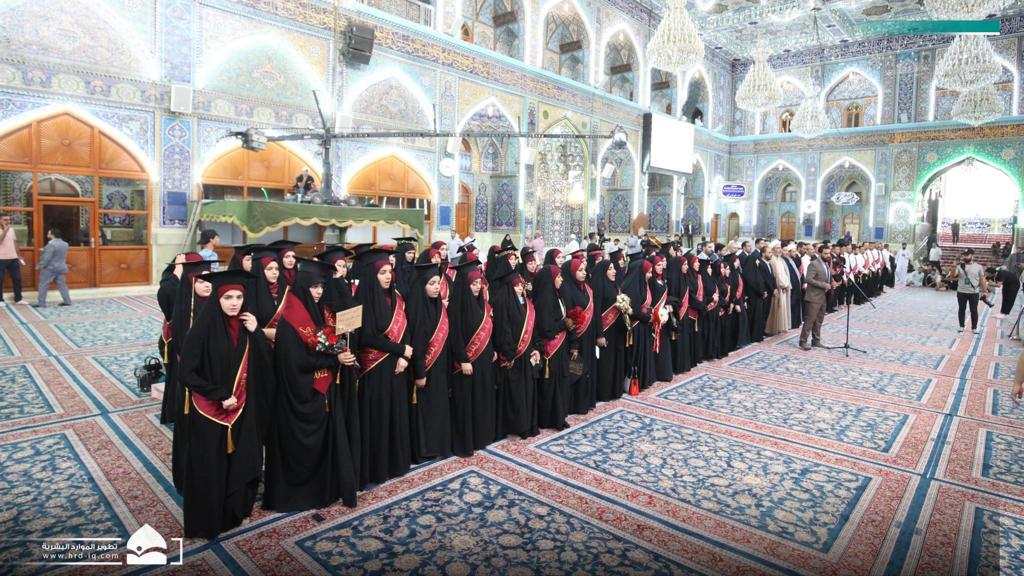 حيث جرى الحفل البهيج في الصحن الحسيني الشريف، بحضور عميد الكلية الاستاذ المساعد الدكتور طلال الكمالي والسادة والسيدات اعضاء هيئة التدريس .