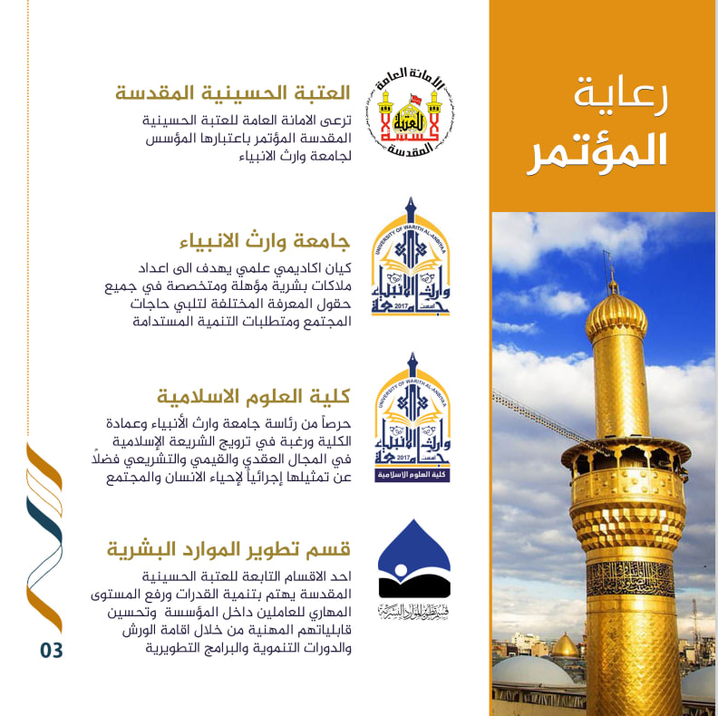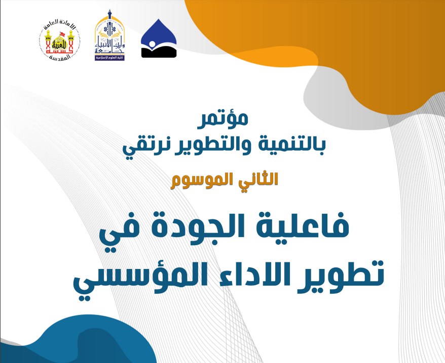 في إطار الجهود المستمرة لتعزيز الجودة وتطوير الأداء المؤسسي، تنظم العتبة الحسينية المقدسة مؤتمرها الثاني بعنوان "بالتنمية والتطوير نرتقي". تحت عنوان "فاعلية الجودة في تطوير الأداء المؤسسي"، بالتعاون مع جامعة وارث الأنبياء، وكلية العلوم الإسلامية، وقسم تطوير الموارد البشرية.
