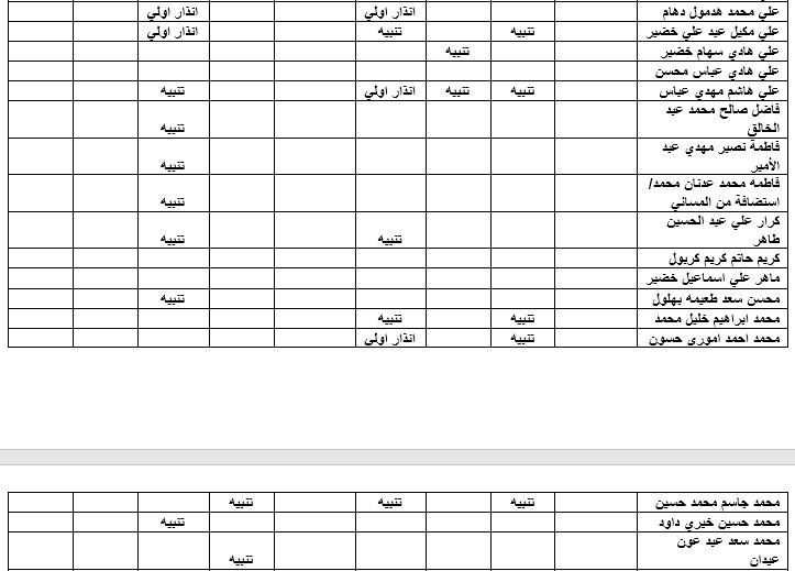 غيابات المرحلة الاولى شعبة(ج)