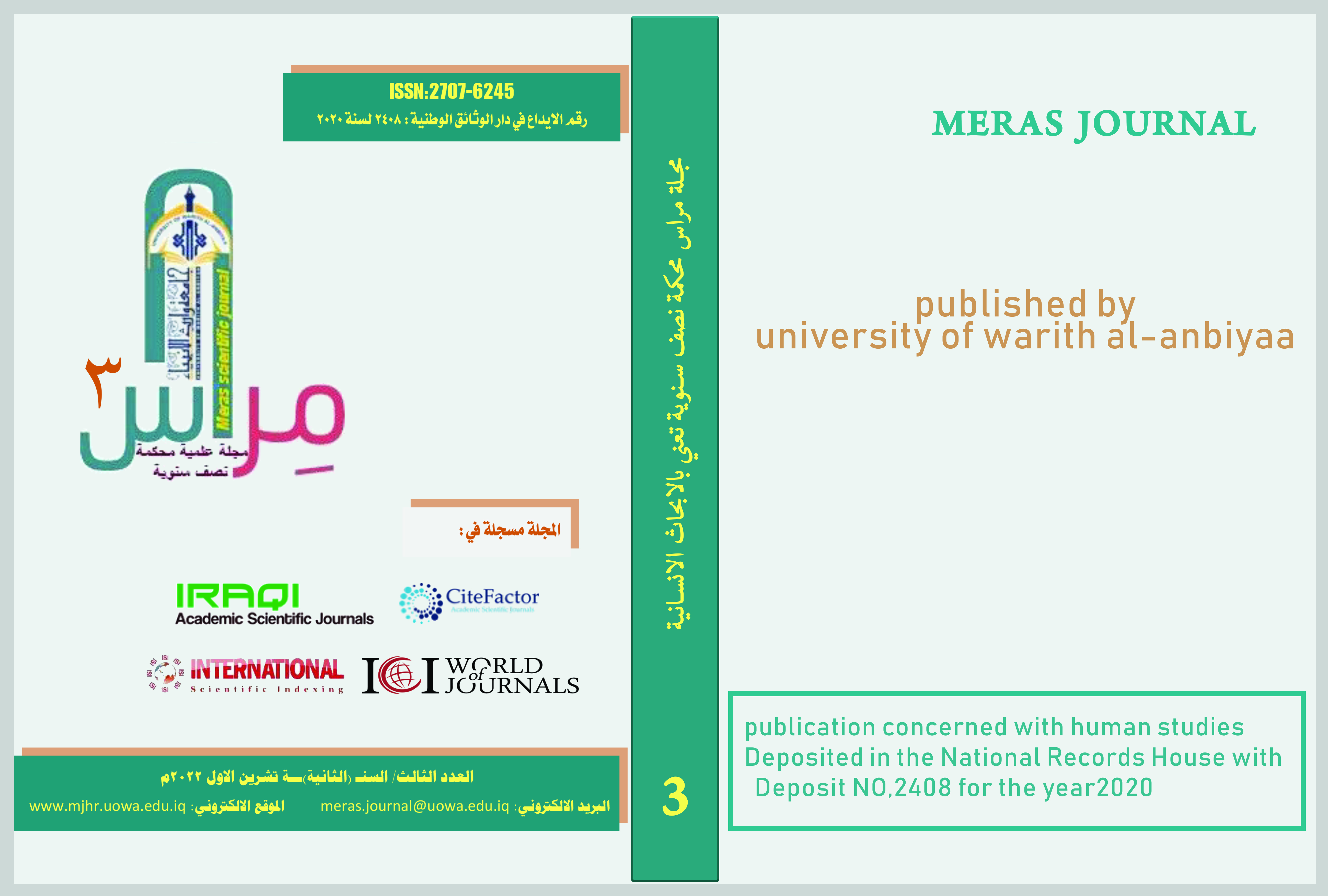 صدر حديثا العدد الثالث من مجلة مراس العلمية المحكمة عن شهر تشرين الثاني لعام ٢٠٢٢م .