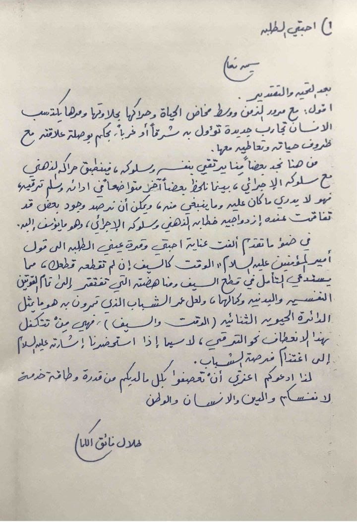 كلمة السيد عميد كلية العلوم الاسلامية الموجهة للطلبة بمناسبة بدء العام الدراسي الجديد ٢٠٢٢-٢٠٢٣.