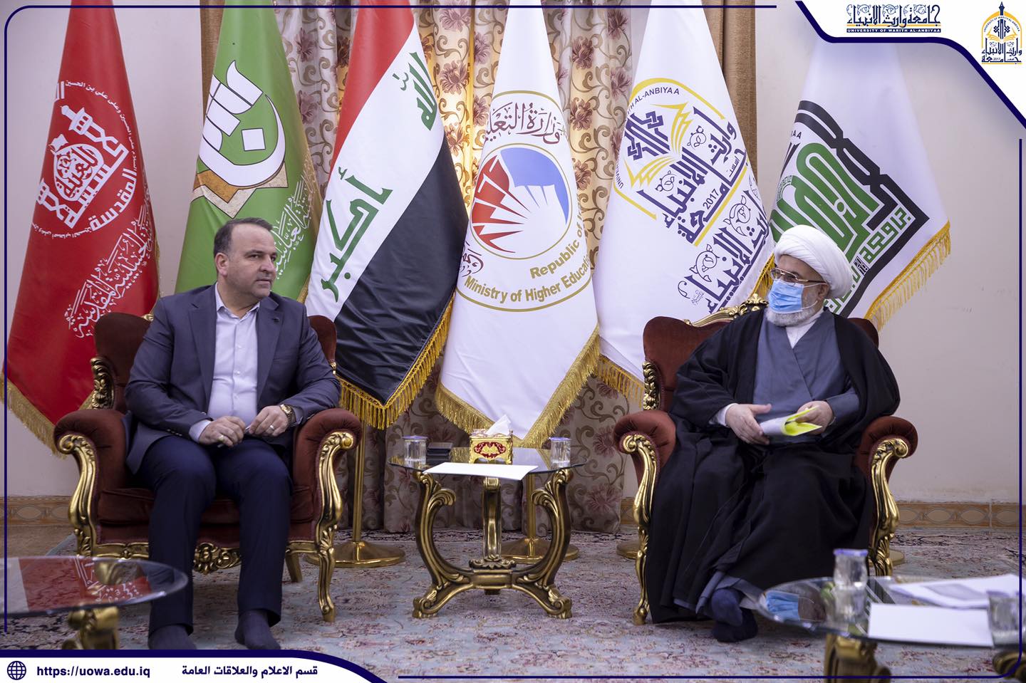 ضمن جولاته التفقدية لمشاريع العتبة الحسينية المقدسة تشرفت جامعة وارث الانبياء(عليه السلام) بزيارة سماحة الشيخ عبدالمهدي الكربلائي(دام عزه) ،حيث كان باستقبال سماحته الاستاذ الدكتور حيدر التميمي رئيس هيئة التعليم الجامعي ،والسيد رئيس الجامعة الاستاذ الدكتور ابراهيم سعيد الحياوي ،والسادة مساعدي رئيس الجامعة ،والسادة عمداء الكليات. ودائما ما يؤكد سماحته على الاهتمام بالجانب العلمي الأخلاقي للطلبة اذ ان بناء الانسان البناء الصحيح القائم على أسس أخلاقية علمية هو المطلب الذي من اجله تبنت العتبة المقدسة مشروع الجامعات .