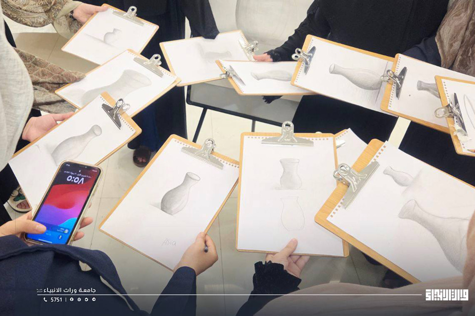 أقام قسم شؤون الأقسام الداخلية في جامعة وارث الأنبياء (عليه السلام) ورشة فنية بعنوان "تطوير مهارة الرسم" بالتعاون مع مديرية شباب ورياضة كربلاء / شعبة الثقافة والفنون، بمشاركة مجموعة من طالبات الأقسام الداخلية في أجواء فنية تفاعلية تهدف إلى تنمية المواهب وتعزيز الإبداع.