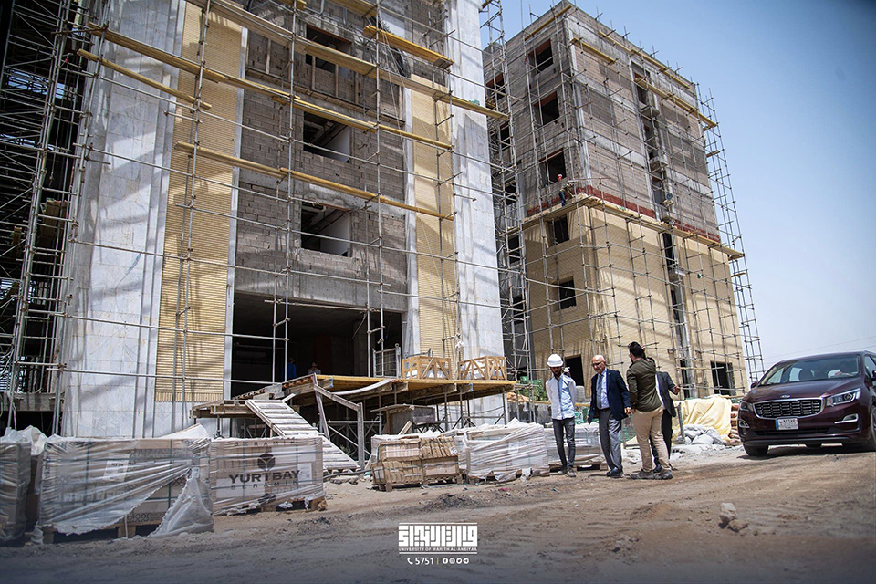 جولة ميدانية للسيد رئيس الجامعة الاستاذ الدكتور ابراهيم الحياوي المحترم ،يرافقه السيد عميد كلية الطب الاستاذ الدكتور علي عبد سعدون المحترم. على مشاريع توسعة جامعة وارث الانبياء(عليه السلام) ، والإطلاع على نسب الانجاز التي وصلت الى مراحل متقدمة.