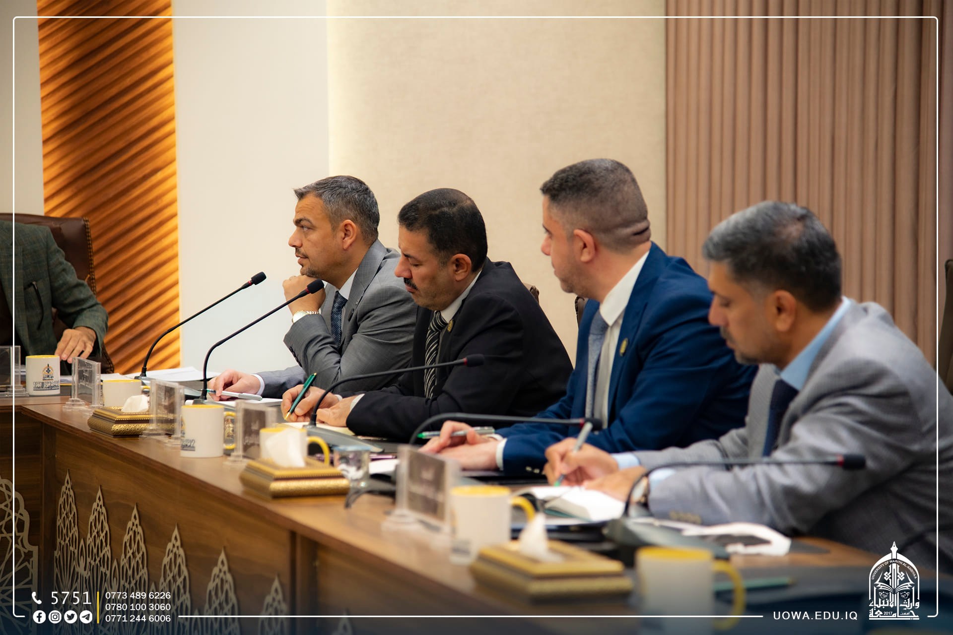 مجلس جامعة وارث الانبياء(عليه السلام) يعقد جلسته الاعتيادية برئاسة الاستاذ الدكتور ابراهيم الحياوي وعضوية السادة مساعدي رئيس الجامعة للشؤون الإدارية والعلمية والسادة عمداء الكليات لمناقشة جملة من القرارات التي تخدم الجامعة وطلبتها الاعزاء.
