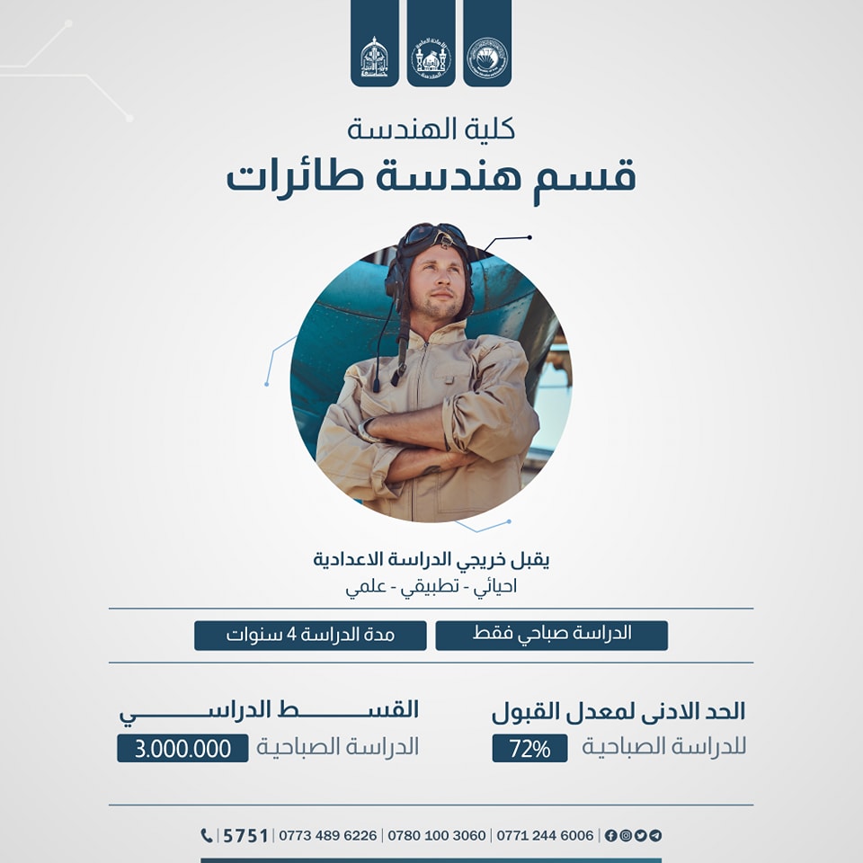 تم #تخفيض معدل القبول في قسم هندسة الطائرات ضمن كلية الهندسة من 72% إلى %70، وهو من ضمن الأقسام المستحدثة في جامعة وارث الأنبياء (عليه السلام) للعام الدراسي الحالي 2023-2024.