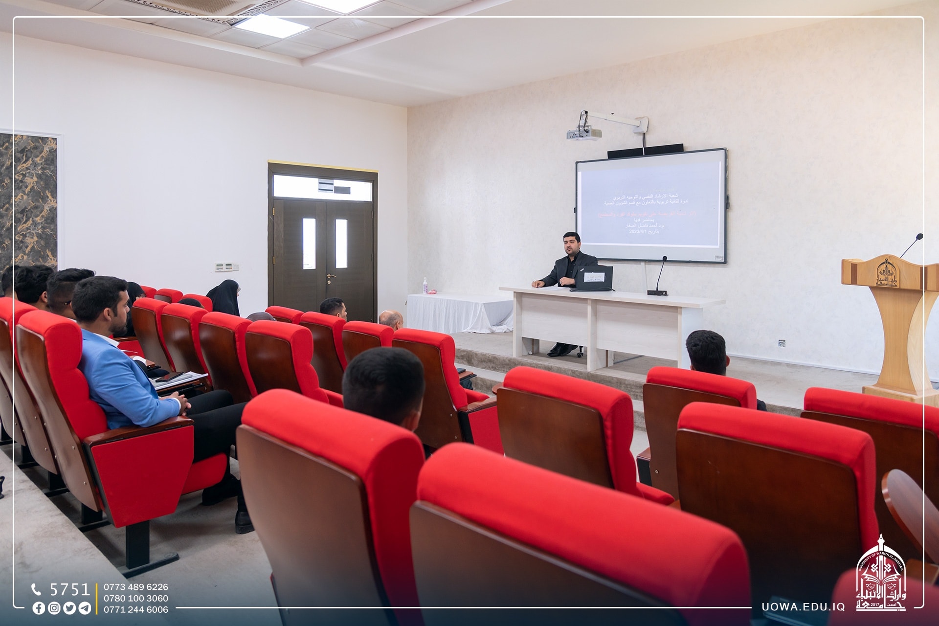 ندوة علمية توعوية بعنوان(تصويب الاخطاء اللغوية الشائعة على مواقع التواصل الاجتماعي)، أقامتها شعبة الارشاد النفسي والتوجيه التربوي في جامعة وارث الانبياء(عليه السلام) وبالتعاون مع قسم الشؤون العلمية