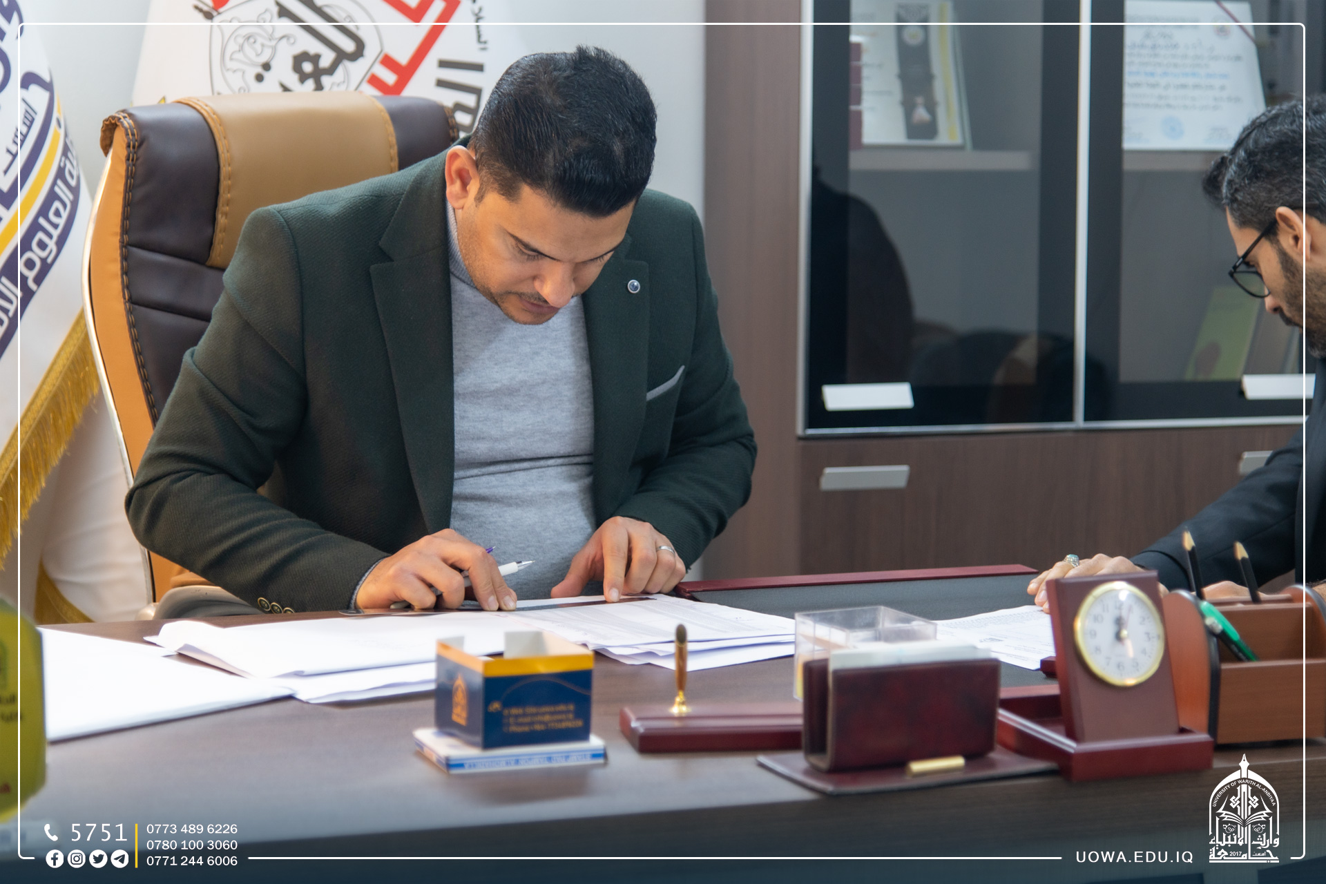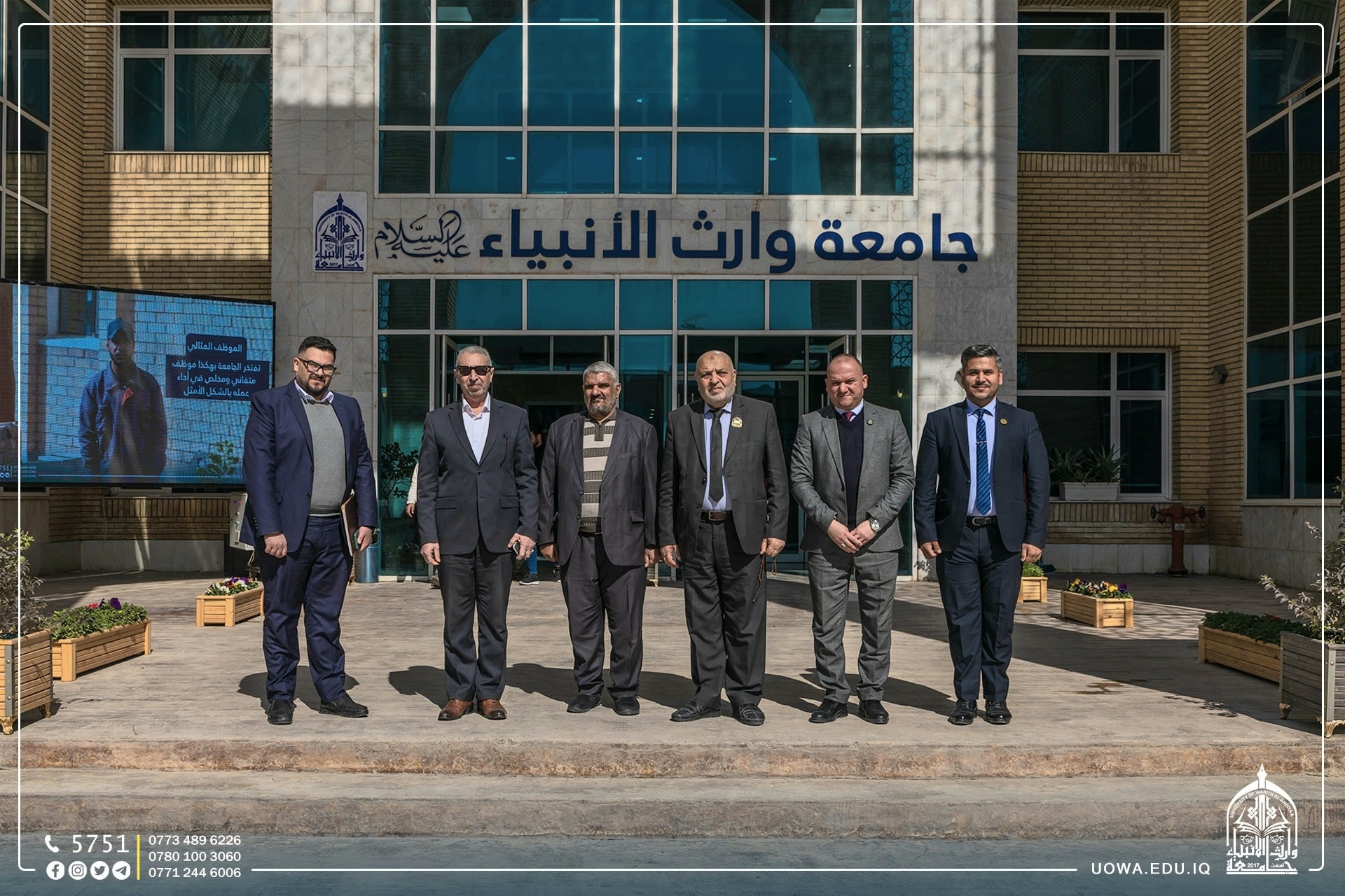 تشرفت جامعة وارث الأنبياء (عليه السلام) بزيارة مستشار الأمين العام للعتبة الحسينية المقدسة للشؤون الأمنية والاجتماعية جناب الحاج فاضل عوز وعضو مجلس ادارة العتبة المطهرة الحاج علي كاظم سلطان (دام توفيقهما).