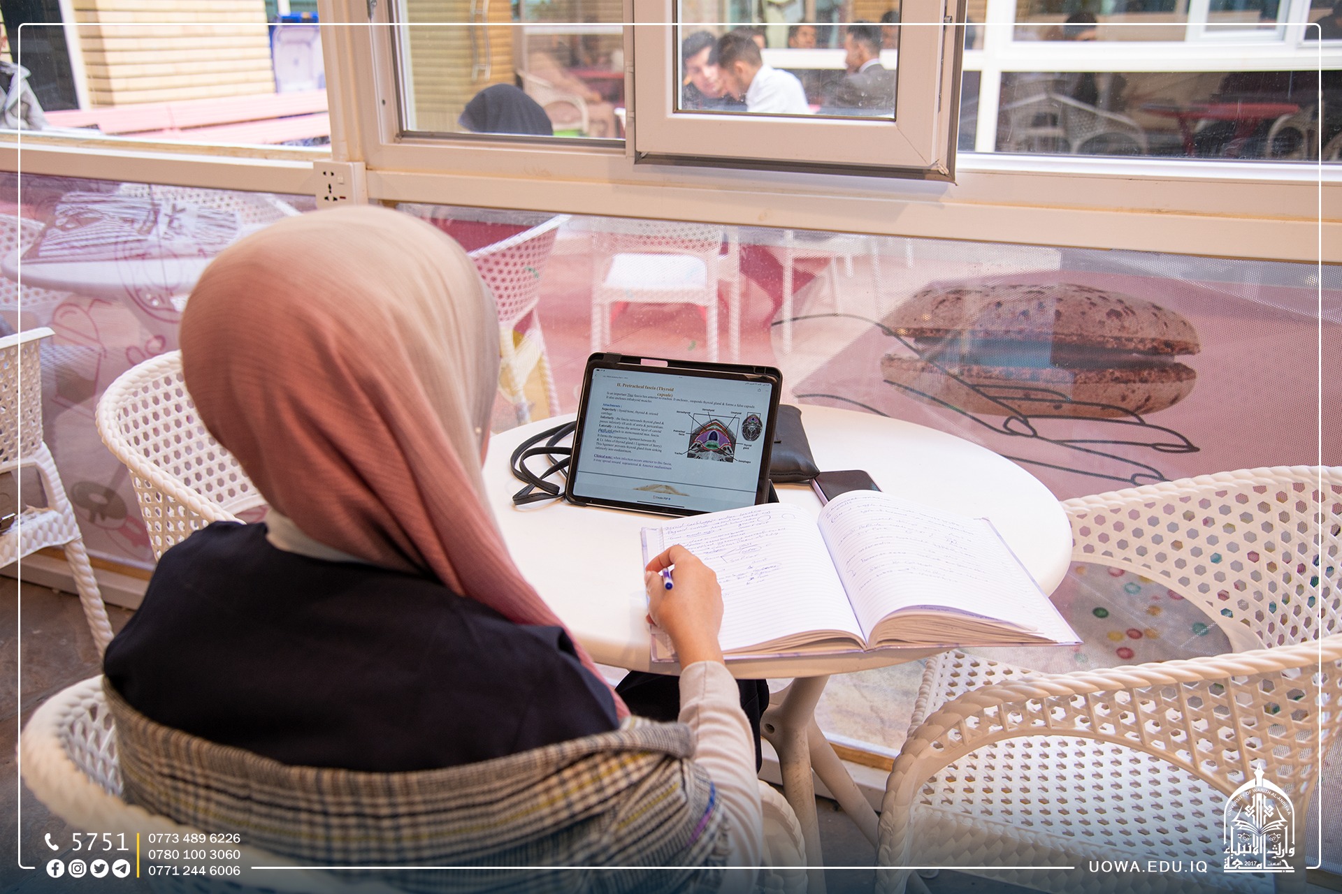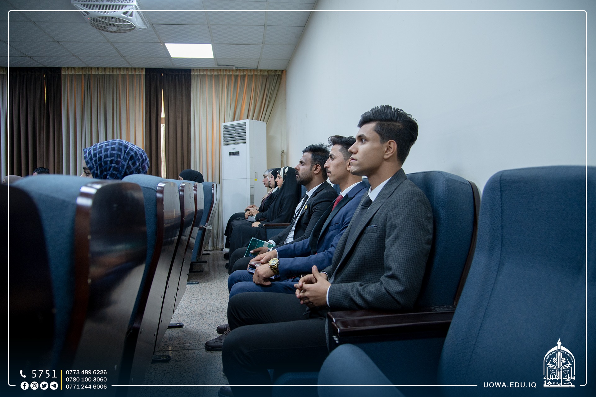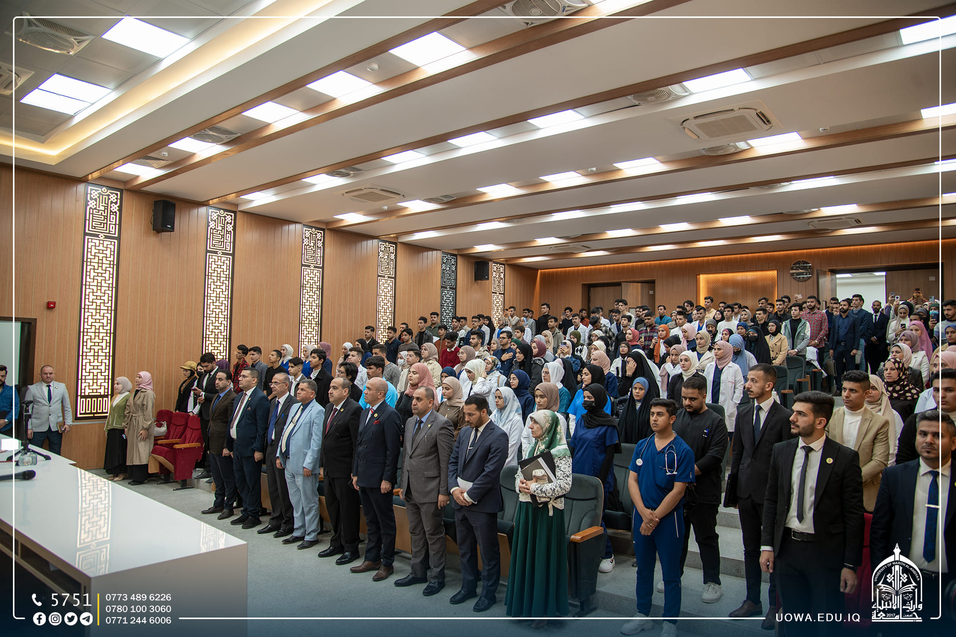 في رحاب جامعة وارث الانبياء(علبه السلام)، ننتظركم اليوم الاربعاء الموافق 23\11\2022 في حفل توزيع جوائز الفائزين بمسابقة وارث الانبياء للمبدعين والموهوبين في المدارس الثانوية في تمام الساعة ال10صباحاً