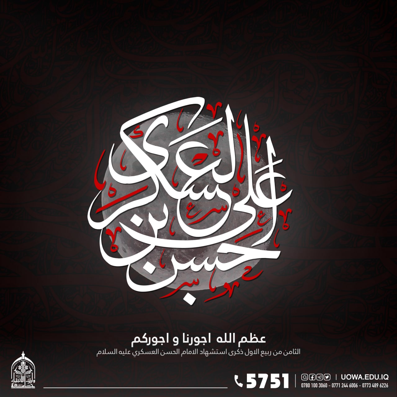 جامعة وارث تنعى الامام الحسن العسكري عليه السلام