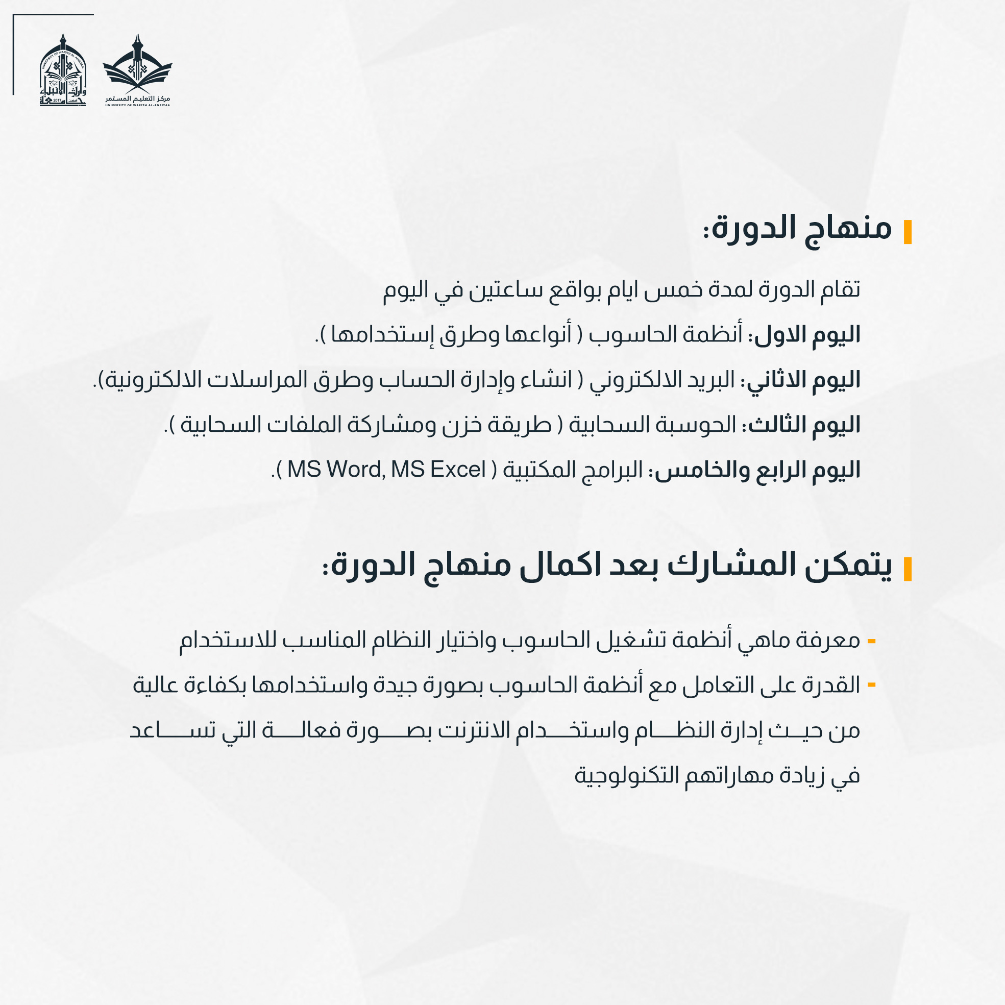 للاشتراك بالدورة يرجى التسجيل عبر الرابط الاتي: