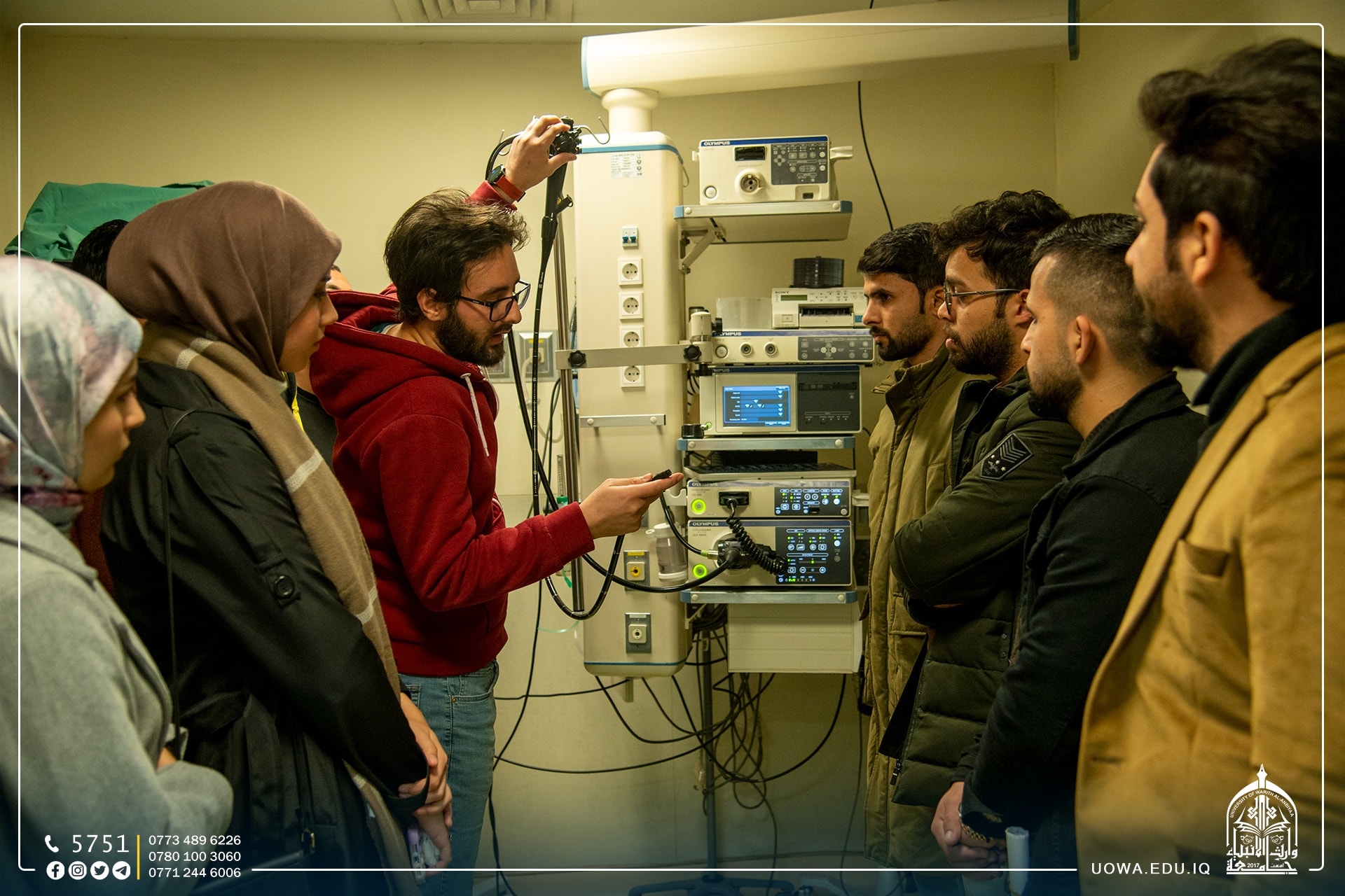 The Department of Biomedical Engineering at Warith Al-Anbiyaa University organized a scientific visit to Imam Zain Al-Abidin Hospital accompanied by the professors of the department to see the medical devices and equipment in the hospital departments and to identify the diagnostic medical devices used.