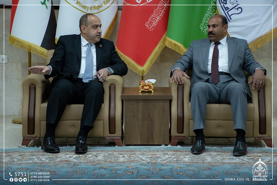 The delegation was received by Mr. Ibrahim Al-Hayawi, the President of the University, along with Dr. Munir Al-Daami, the head of the Academic Union Branch in Karbala, and Sheikh Rabaah Hussein Al-Rabaah, a legal expert.