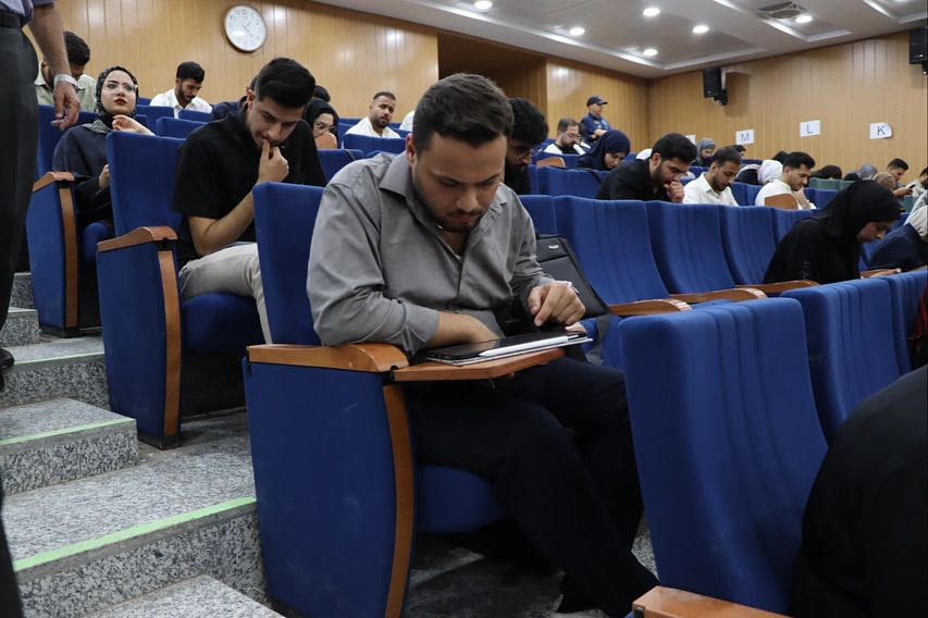 The images show the students' serious engagement during the electronic exams and the smooth flow of the examination process at the College of Medicine, Warith Al-Anbiya University (peace be upon him)