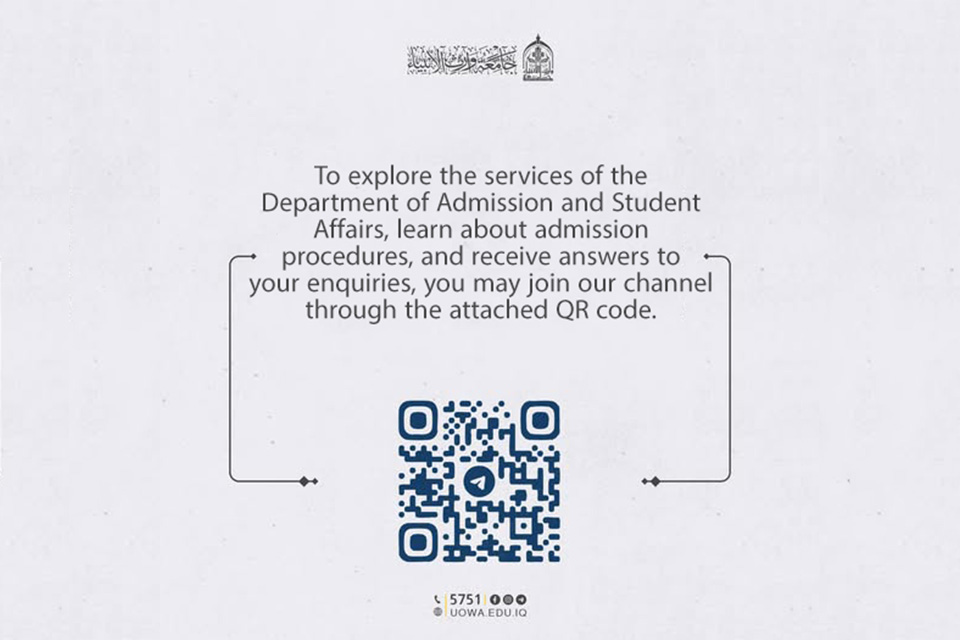 In its commitment to serving students and providing timely responses to all enquiries regarding admission, enrolment, and academic studies across its colleges and departments, the University of Warith Al-Anbiyaa (PBUH) invites you to join the official channel of the Admission & Student Affairs Department.