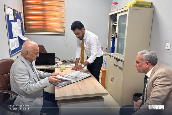 The University of Warith Al-Anbiyaa (PBUH) in Karbala welcomed Professor Dr. Nashaat Saliwa, President of Al-Hamdaniya University in Mosul. He was received by Professor Dr. Waqid Al-Moussawi, Vice President for Academic Affairs, and Professor Dr. Nawfal Al-Araji, Vice President for Administrative Affairs.