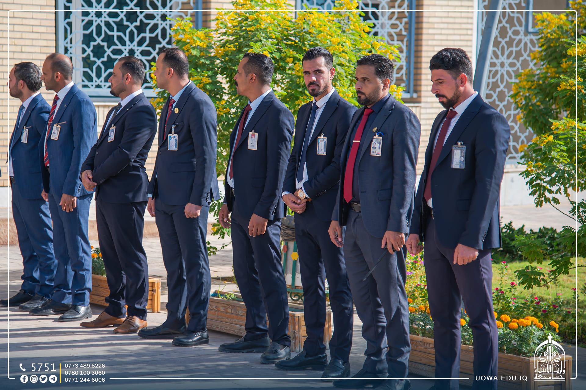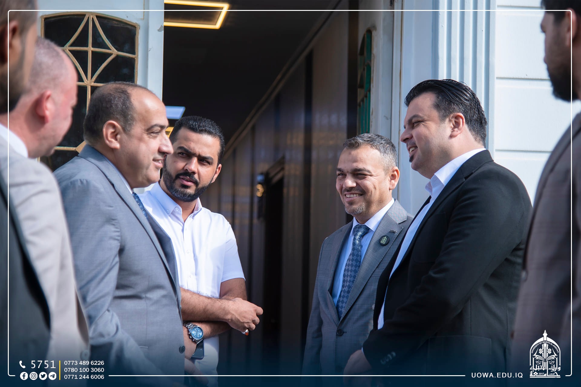 The President of the University, Professor Dr. Ibrahim Al-Hayawi, received the President of the University of Karbala, Professor Dr. Basim Khalil Al-Saadi, along with the Administrative Assistant, Professor Dr. Akram Al-Yasiri, who visited the university to offer congratulations to Professor Dr. Waqad Al-Mousawi on the occasion of his appointment as the Assistant President of the University for Scientific Affairs. They prayed to Allah, the Almighty, for his continued success in the path of knowledge and his service to our beloved country.