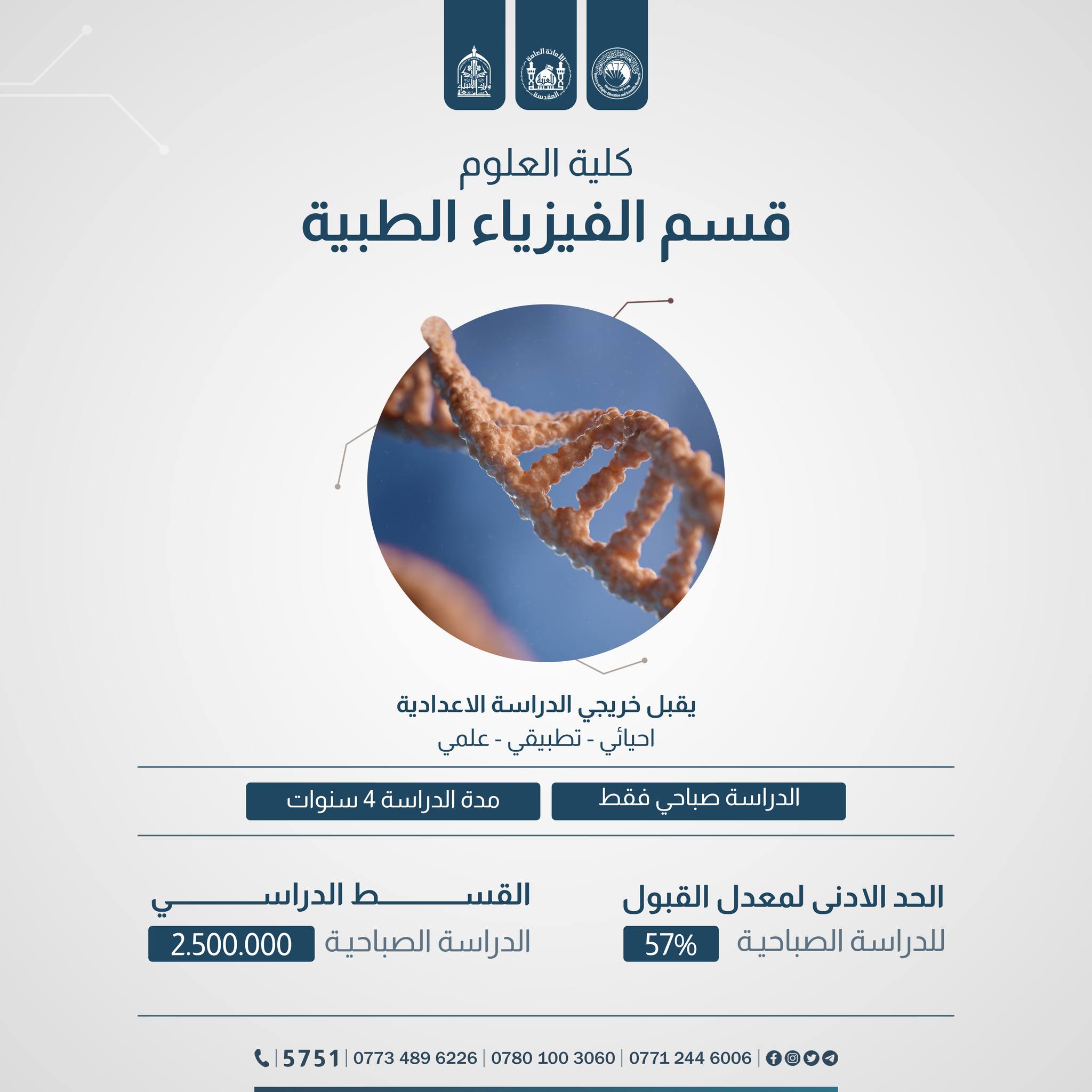 one of the supporting medical departments that prepares experts in medical physics with a high degree of scientific and technical skill, contributing to meeting the needs of the job market and advancing this field.