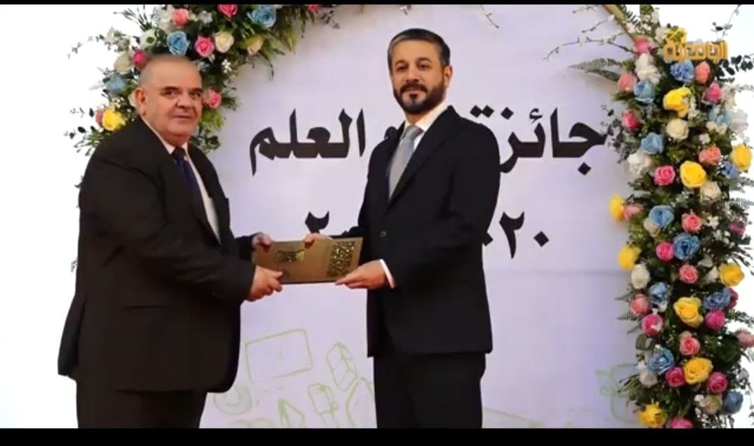 His Excellency the Minister of Higher Education and Scientific Research, Dr. Naim Al-Aboudi, honoured the teaching staff at Warith Al-Anbiyaa University, Professor Dr. Moneim Al-Shouk, teaching at the College of Medicine and assistant professor Dr. Anmar Faleh Dekan, with the “Science Day Award” for the outstanding scientific research outcome.