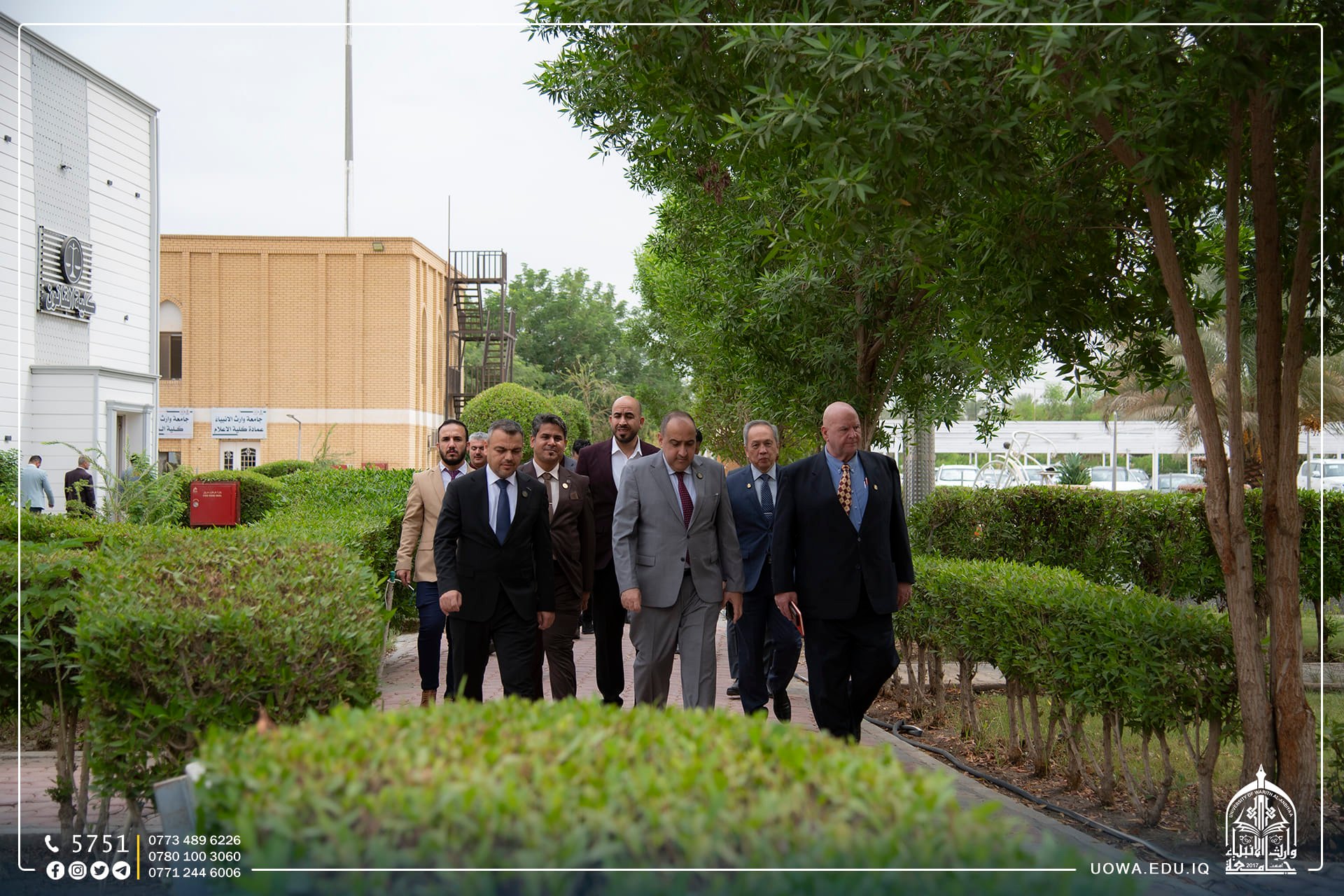 The delegation was received by Mr. Ibrahim Al-Hayawi, the President of the University, along with Dr. Munir Al-Daami, the head of the Academic Union Branch in Karbala, and Sheikh Rabaah Hussein Al-Rabaah, a legal expert.